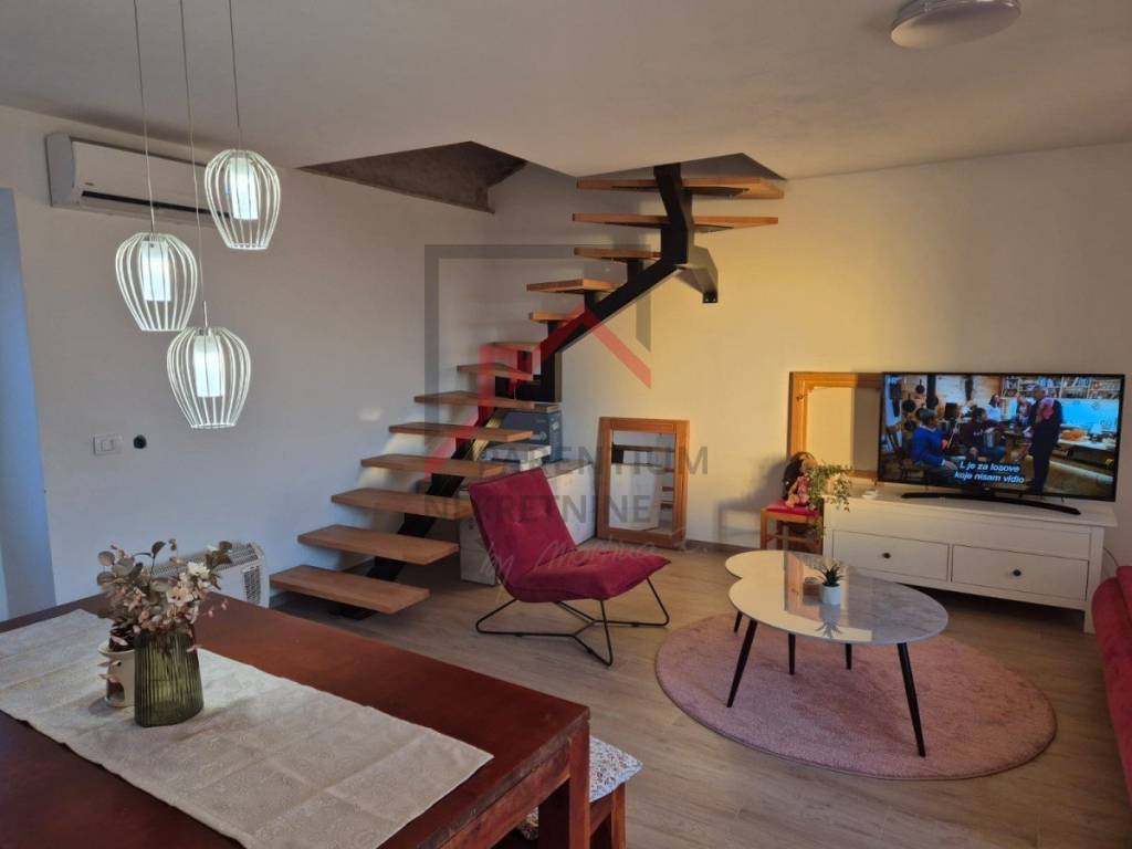 In front of the house there is a parking space for 3 cars. It used to be an old stone house, built before 1968. Today the new owner has completely renovated the house, and the last details are still being decorated and completed. The house has PVC joinery, the interior joinery is wooden. The house has air conditioning for heating and wall radiators. The first phase for radiators via a heat pump has been installed.