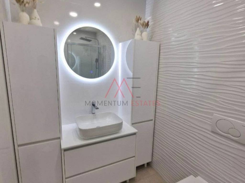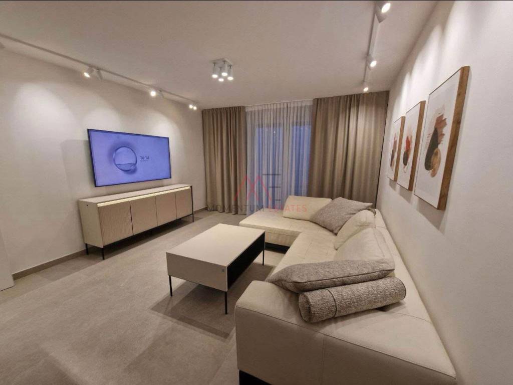 Iznajmljuje se dvosoban stan + dnevni boravak+balkoni+ostava (70m2) na lokaciji Krnjevo. Stan je novouredjen na trećem katu zgrade koja ima lift. Dnevni boravak ima pogled more. Druga soba je manja i mogućnost uređenja sobe po dogovoru. Potpuno opremljen (pecnica, kuhinjska ploca na struju, mikrovalna, masina za sudje, masina za ves, flat tv-i, frizider, frizer, klima uredjaj). Električno podizanje i spuštanje roleta. Pogodan za jednu ili dvije osobe. Parking u sklopu zgrade. Iskazana cijena je bez rezija koje se placaju dodatno (struja, voda, pricuva, internet, ciscenje stubista zgrade, odvoz otpada - komunalije). Grijanje na struju (podno+klima+radijator spavaca soba). Topla voda putem bojlera na struju. Opticki internet.