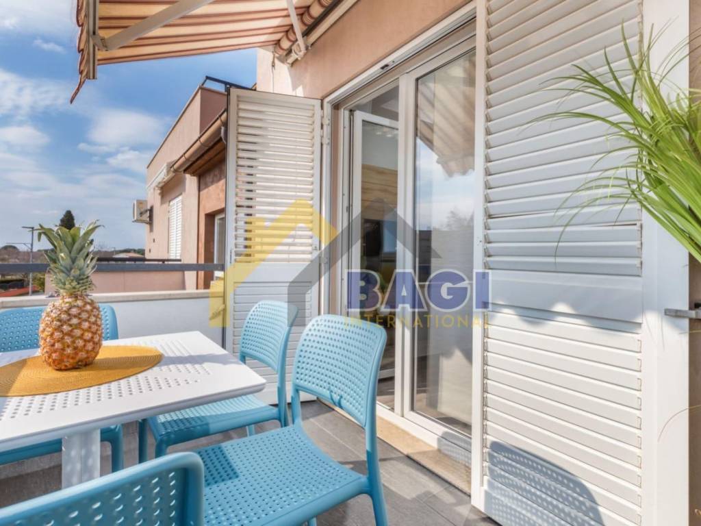 For sale is a beautiful apartment located in Valbandon, 500 meters from the sea and beaches. The apartment is two-story, first and second floor, and its total size is 76.27m2. It consists of a hallway, living room, two bedrooms, bathroom, kitchen with dining area, toilet and laundry room, and a sunny terrace. It was luxuriously decorated in 2022. The apartment also has a parking space.