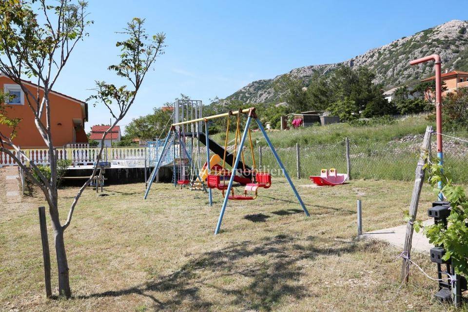 Detached house in a quiet location in Baska. The house consists of three floors and has a total of 8 one-bedroom apartments. The apartments are fully equipped for holiday rental. The house is located on a plot of 1000 m2, where there are 9 parking spaces, barbecue, two garages (one in function of a laundry room), a sunbathing area and a playground for children. This property is surrounded by green fields and natural beauty of Baska. Property for lovers of peace and quiet. From the sea 2500 meters.