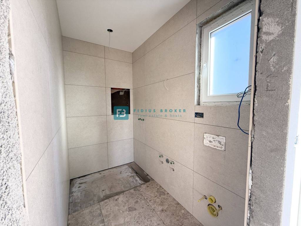 The semi-detached house in a new building is located in a quiet and well-maintained part of the city, surrounded by family houses. The property is located in a dead end street, which ensures peace and privacy. At a distance of 1800 m from the city center and 2000 m from the beach, it allows you to get away from the city crowds and stress, and yet you are only a few minutes away from all the amenities that Vodice offers.