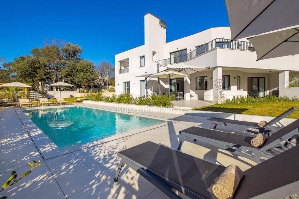 Luxury villa for sale in Malinska on the island of Krk, measuring approximately 320 m², is situated on a beautifully landscaped plot of 1,920 m². The villa is located in an attractive location, just 100 meters from the beach.