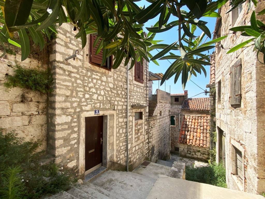 The Palace of the Old Pretura, in Juraj Dalmatinac Street, is a complex of houses consisting of eastern and western buildings. The buildings have a ground floor and two floors, with the western building being slightly lower. They are built of quality stone. All window openings on the main south facade of the houses are built with profiled skylights. At the top of the facade of the eastern building is a unique painted luminaire (crown of the house) framed by baroque spiral ornaments, the so-called. volutes, in a triangular gable. Below the roof, on the second floor, you can see a large rebuilt early Renaissance window with a motif of alternating teeth. The ground floor of Stara Pretura, which is a rarity in the interiors of old Šibenik houses, is paved with a combination of pebbles and bricks, which was a common combination for paving old city streets.