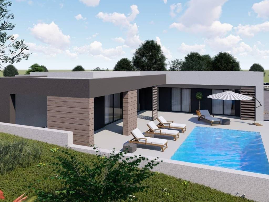 Zemljište dolazi s već gotovim projektom za izgradnju moderne obiteljske kuće prizemnice s bazenom, što vam omogućava brži i jednostavniji početak gradnje. Projekt je osmišljen s ciljem pružanja maksimalne udobnosti i funkcionalnosti, kombinirajući moderni dizajn s tradicionalnim elementima istarske arhitekture.