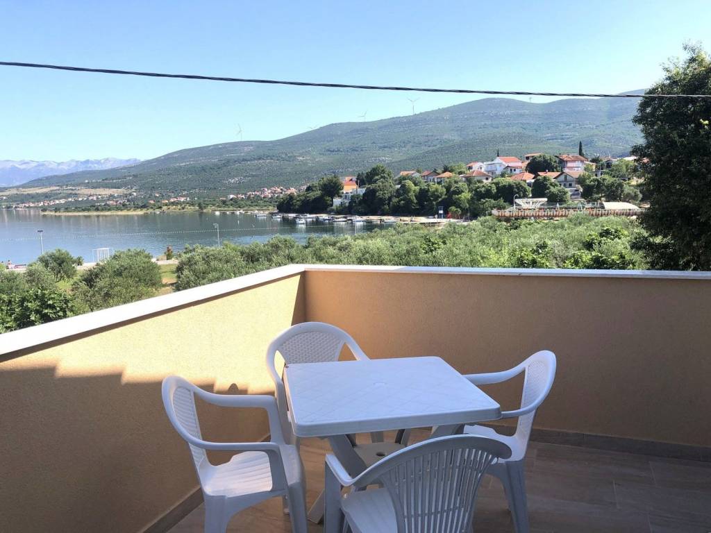 On the first floor there are two one-room apartments, each with its own access staircase and a large common balcony with a view of the sea.