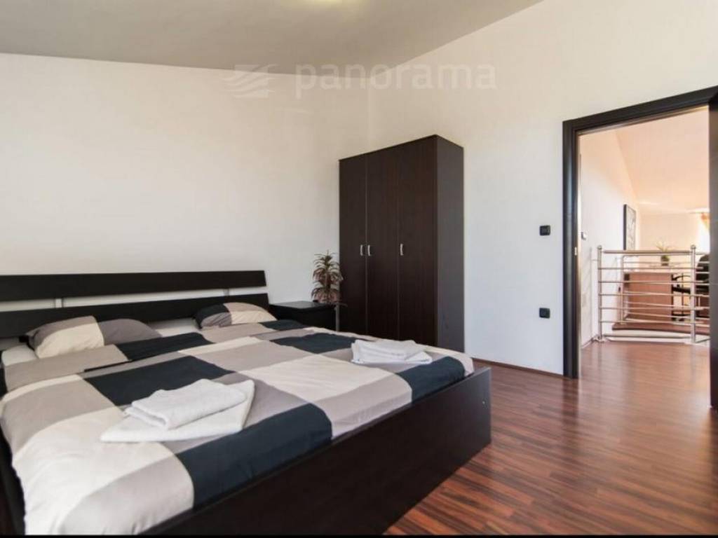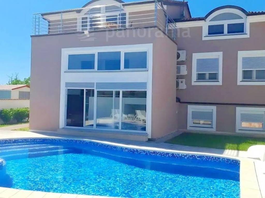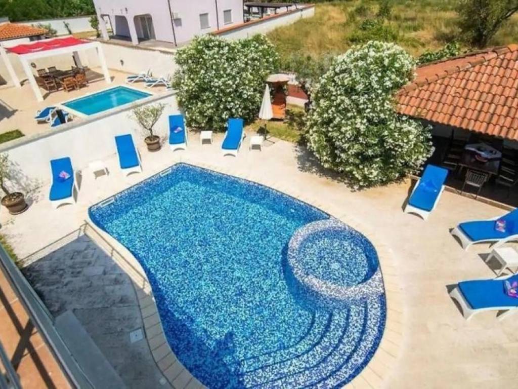 This luxurious villa is located in a quiet urban part of the city, with all facilities nearby. It was built as a large comfortable house for a large family so that all rooms are spacious with living areas on each floor. It has a total of 3 floors: basement, upper ground floor and 1st floor. In the basement there is a garage for 2 cars, a gym, an entertainment room and a toilet. On the upper ground floor there is a spacious living room with access to the terrace and pool, kitchen and dining room, 2 bedrooms, bathroom and balcony. On the 1st floor there are 3 more bedrooms, a bathroom and an anteroom in the function of another living room.