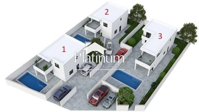 VODNJAN we are selling beautiful villas under construction. The villas have a modern design and top quality construction and built-in materials. The houses have a view of the sea and have an area of 170 m2. Each house has 3 bedrooms and 2 bathrooms, living room, kitchen, dining room and a large terrace. There is a beautiful swimming pool in the yard. Parking for 2 cars. VILLA 1 - EUR 475,000 SOLD VILLA 2 - EUR 515,000 VILLA 3 - EUR 560,000 MOVE-IN AND COMPLETION OF WORK IN SPRING 2024. WE ACCEPT RESERVATIONS. info on 00385 91 1608456