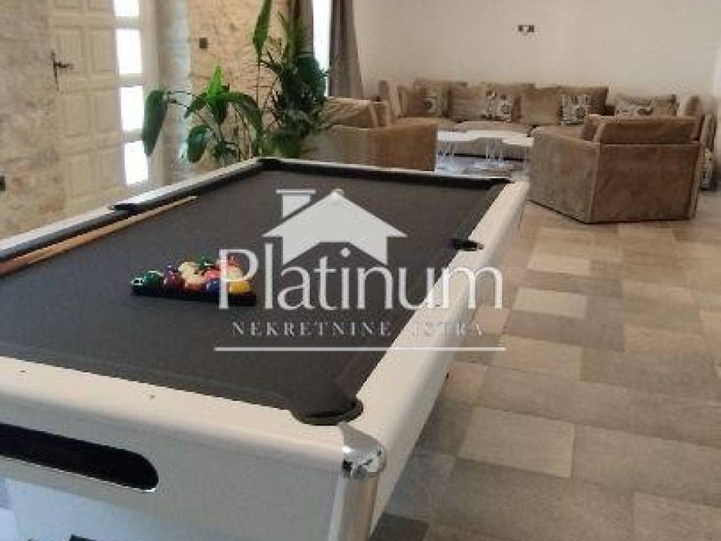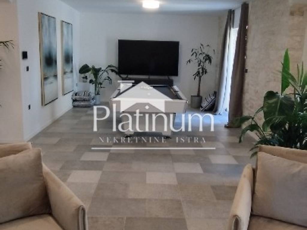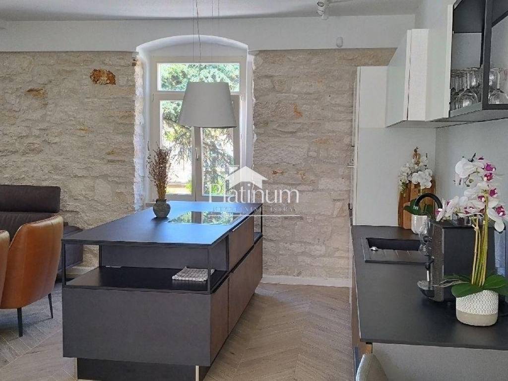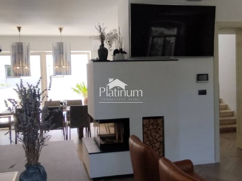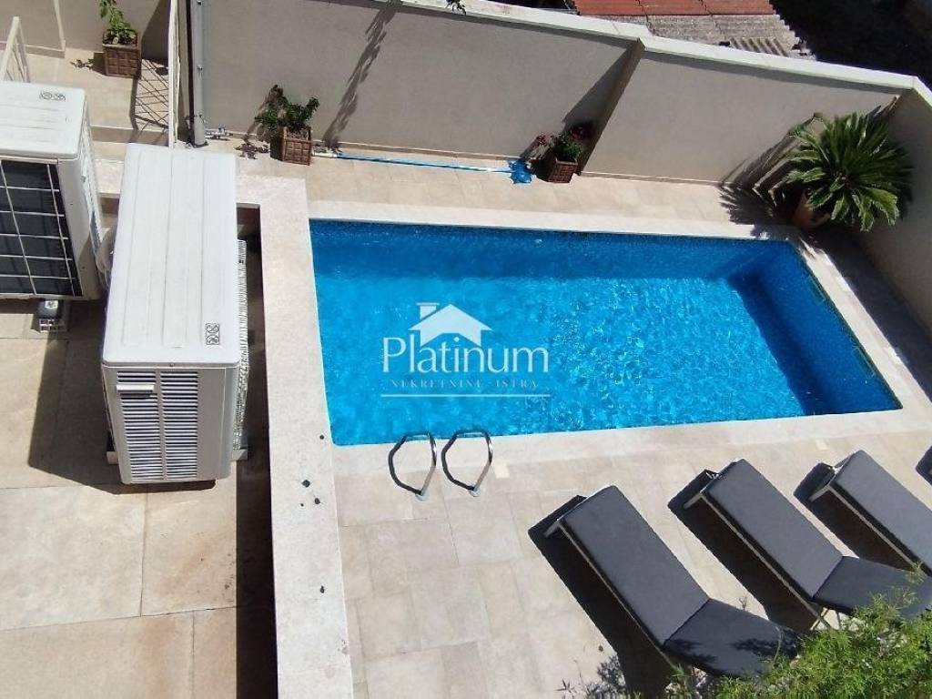 We are selling a beautiful, completely renovated Austro-Hungarian stone villa with a sea view in the heart of Pula. The first entrance leads to a spacious terrace with an entrance to the premises - a sauna (combined sauna, Finnish and infrared), a game room with billiards and a small fitness center. The second and main entrance has a parking lot for three cars, a swimming pool with heating, automatic salt cloning and counter-current swimming. The house consists of 4 bedrooms, 4 bathrooms, separate toilet, living room with kitchen and dining room, game room, fitness room, sauna and small wine shop, balconies and a large terrace with a view of the sea. The plan is to build another terrace on the second floor of the house, which will have a panoramic view of the sea and the city. The house is decorated with style and its very position works very well in tourism. Underfloor heating, Mitsubishi air conditioners in all rooms. A house worthy of attention and which will surely return your investment. Info on 00385 91 924 9486