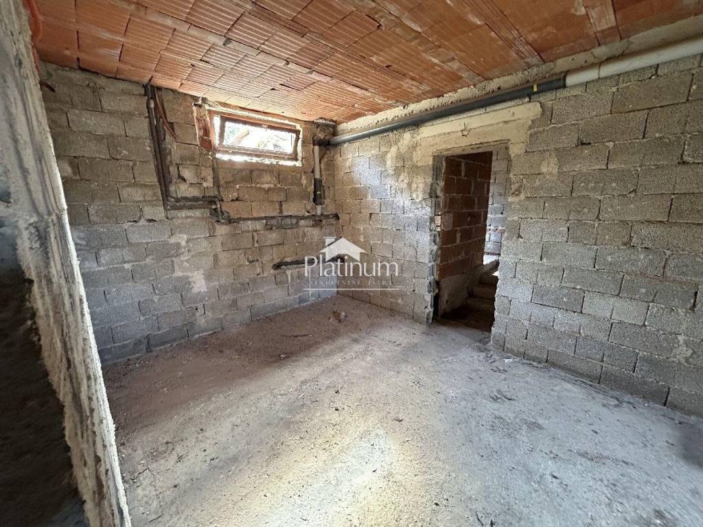 In the municipality of Fažana, this detached house is for sale, consisting of a large basement, ground floor and first floor. In the basement and ground floor, electricity, water and sewage installations have been installed. It is necessary to do the same on the floor and attic. The house is being sold in the raw stage. It has an attached deed for us