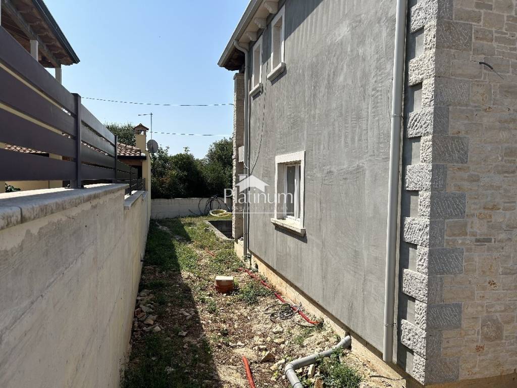Not far from Peroj and Fažana, this beautiful detached house is for sale, consisting of ground floor and first floor and an outdoor pool of 30m2 (all registered). On the ground floor there is a living room with a kitchen and a dining room, a bedroom, a bathroom and a terrace. Upstairs there are three bedrooms, two bathrooms and two terraces that are connected to two rooms. In the outer part there is a swimming pool and a summer kitchen, and there will be another bathroom. Ceramics and a heat pump are installed in the house. In the stated price, the seller undertakes to complete landscaping and the swimming pool. Documentation in order, pure ownership