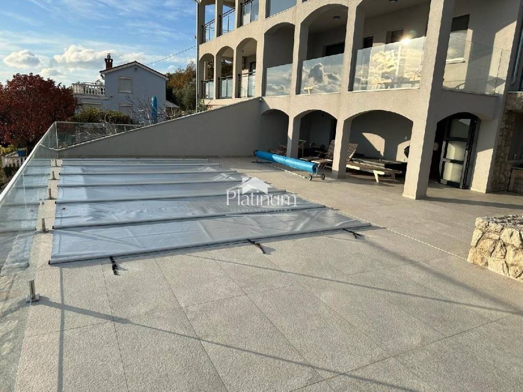 A luxurious house with a swimming pool and additional building land with a valid building permit for a villa is for sale! This unique property is located on a hill with a panoramic view of the sea and the island of Cres and offers top quality construction and materials. ? House 255 m of area ? Garden 306 m, fenced and decorated with olive trees ? Swimming pool with automatic purification system and heating ? Building plot 469 m with a permit for a villa ? Fantastic view of the sea and Cres HOUSE DETAILS Extremely solid and high-quality construction The house is built of the highest quality materials, providing durability and superior insulation. Thermal insulation The facade with 10 cm of styrofoam in gray ensures energy efficiency and lower energy consumption. High-quality joinery PVC windows and doors in white on the upper part of the house, while the entrance side is in a modern anthracite color. Heating and cooling Built-in infrared radiators and three air conditioners ensure optimal temperature throughout the year. Floor coverings and terrace The large terrace and the area around the pool are paved with the highest quality 2 cm thick tiles, which are resistant to weather conditions and wear. The house consists of three spacious apartments and a tavern in the basement (40 m), which allows for various usage options family life, tourist rental or a combination. The house also has 3 terraces of 25 m2, two of which are covered. ? Ground floor (70 m) spacious apartment with two bedrooms, bathroom, kitchen, dining room and living room with access to the terrace. ? First floor two apartments (35 m each), each with one bedroom, large bathroom and shared terrace (25 m). ? Tavern (40 m) perfect for socializing or redecorating according to the wishes of the new owners. BEAUTIFUL EXTERIOR WITH SWIMMING POOL AND RELAXING GARDEN ? The yard is fully landscaped, fenced and enriched with old olive trees. ? Covered summer kitchen and jacuzzi - ideal for year-round enjoyment. ? Swimming pool with heat pump (15kW) - provides water heating and automatic electrolysis for chlorine-free purification. ? Outdoor shower and tempered glass fence around the pool give an additional impression of luxury and security. ? Paved courtyard with secured parking. ? Safety first - Alarm system and video surveillance. BUILDING LAND - PERFECT INVESTMENT! ? Area: 469 m ? Final building permit for a luxury villa - possibility of construction immediately! ? Secured access road. ? Flat plot with unobstructed views of the sea and the island of Cres. Perfect opportunity for additional development or expansion of the property! The house is being sold fully furnished! Perfect property for family life or as a lucrative tourist investment with great rental potential. ? Contact us for more information and arrange a viewing! +385 959003151