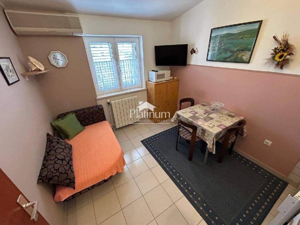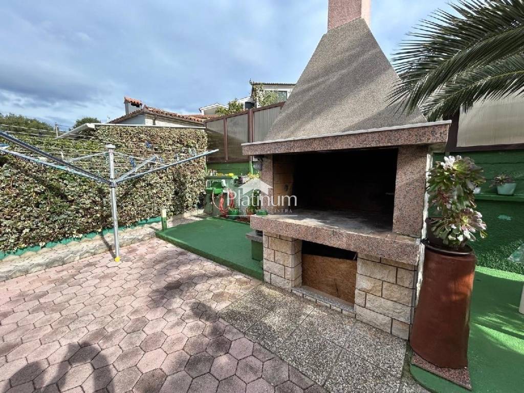 In Štinjan, there is this beautiful house with several apartments with a building plot of 349m2 (currently a large landscaped yard with parking and garage). The house is located on a plot of 350m2, and the total living area of the house is 360m2. In the basement of the house there are three rooms, one for socializing, a pantry and a room where the heating system with storage is located. On the high ground floor there is an apartmen