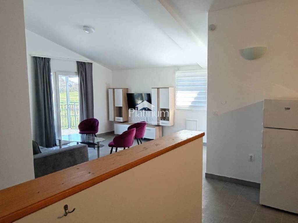 For sale apartment on the first floor. The apartment consists of two bedrooms, each with access to the terrace, kitchen with dining area, living room with access to the terrace, bathroom, separate toilet, hallway. In the yard there is currently a shared swimming pool and garden with the possibility of purchasing the pool into your own possession. By purchasing two apartments on the first floor, the swimming pool and garden are included in the price. Parking space PVC joinery Air conditioning Underfloor heating throughout Completely newly furnished Info on 00385 91 924 9486