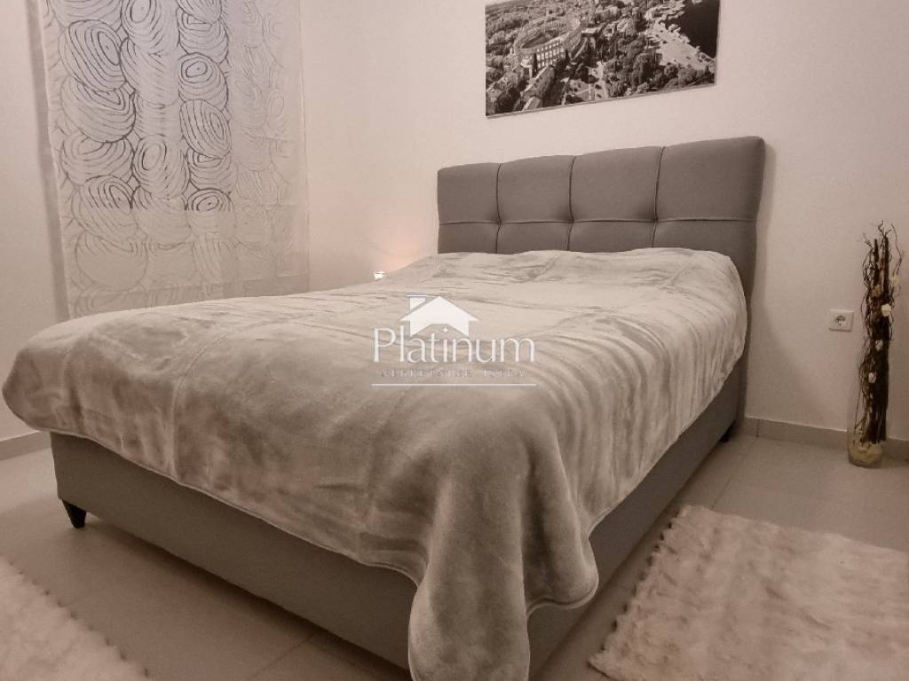 In Pula, not far from the city center, there is this beautiful comfortable apartment consisting of an entrance hall, living room with kitchen and dining area, bedroom and bathroom. The apartment is sold fully furnished and equipped as in the picture. Possibility of moving in immediately. The apartment is west-facing. The apartment also has a storage room in the common areas of the building. Heatin