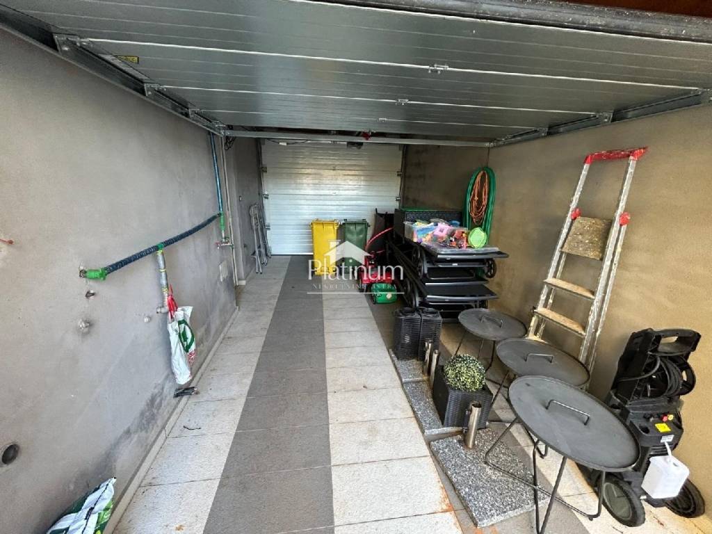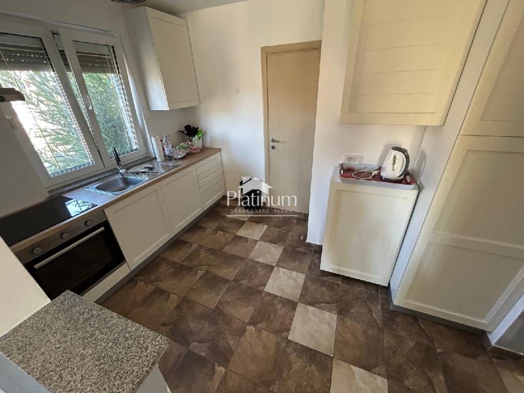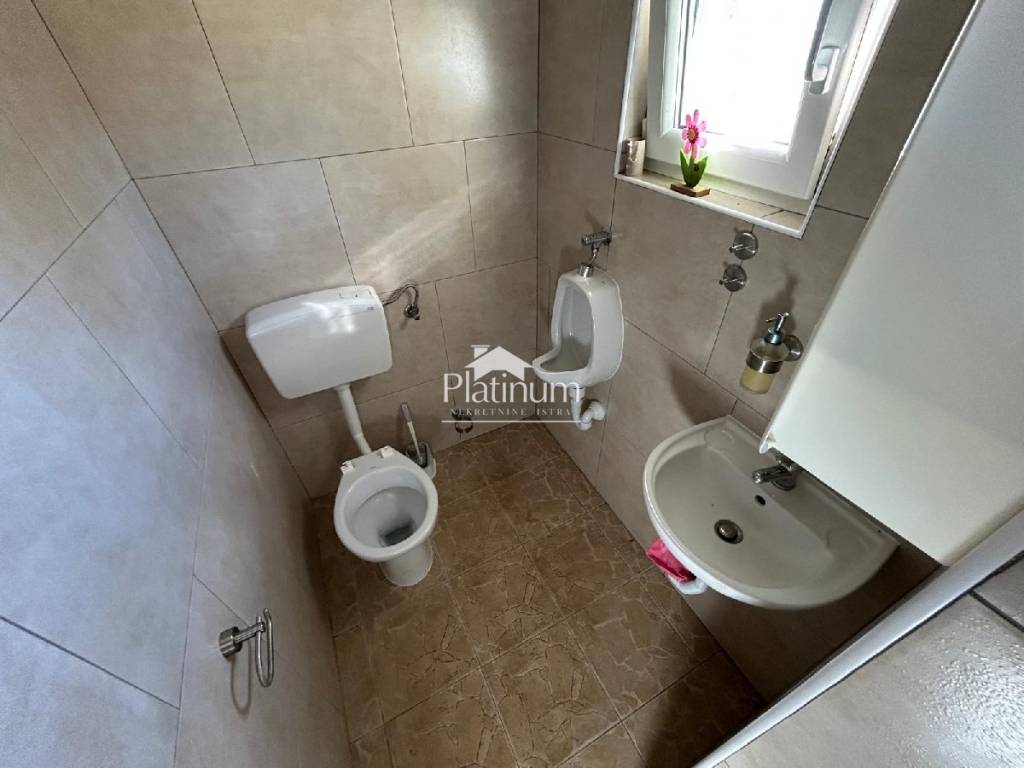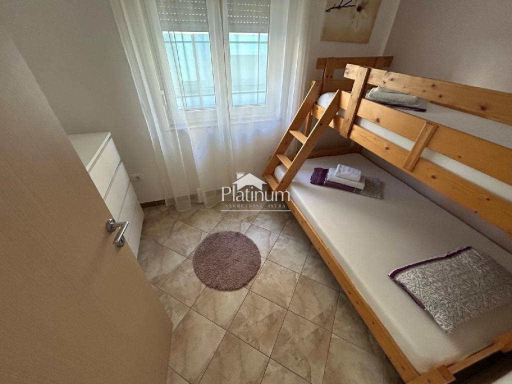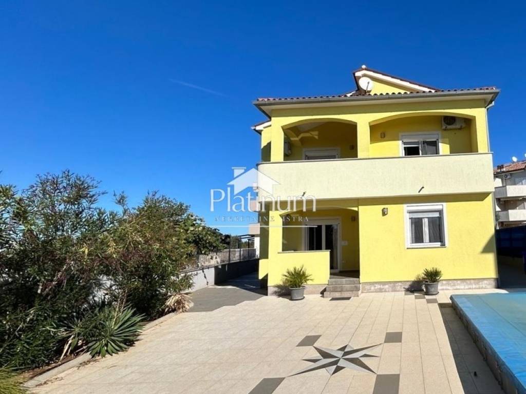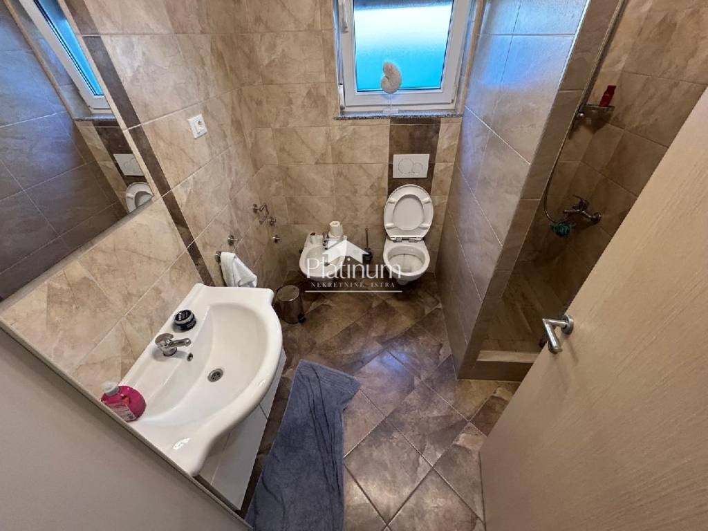 In the vicinity of Peroj, in a quiet place, there is this fantastic house consisting of a ground floor and an upper floor. On the ground floor is a comfortable apartment consisting of an entrance hall, bathroom, storage room, kitchen connected to the living room with access to the terrace from which you can go down to the pool, three bedrooms and a bathroom. On the first floor there are two apartments, one with one bedroom, bathroom, kitchen with living room and access to a covered terrace with a partial view of the sea. The second apartment consists of two bedrooms, a hallway, a bathroom and a kitchen with a living room that also leads to the terrace. In the yard there is a swimming pool with a sunbathing area, a covered area with a fireplace, a summer kitchen and a toilet. On the front side of the yard, there is one parking space and an entrance through the garage through which you can extend and park next to the house. The house has PVC joinery with mosquito nets, ceramic floors. Heatin