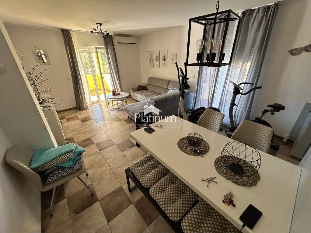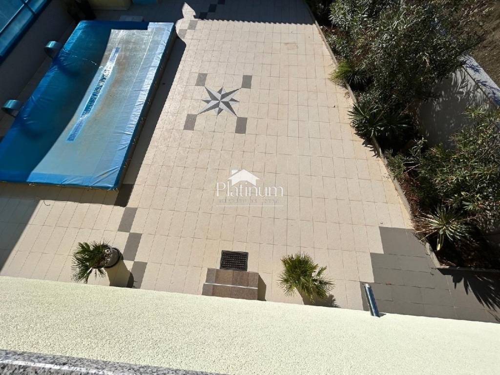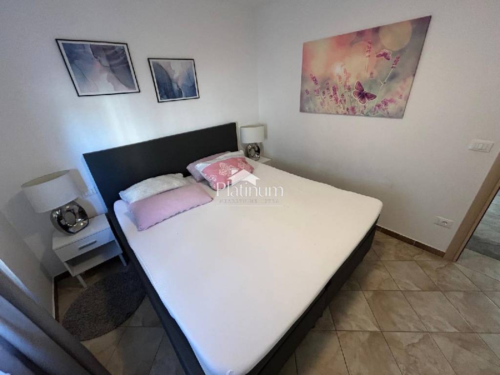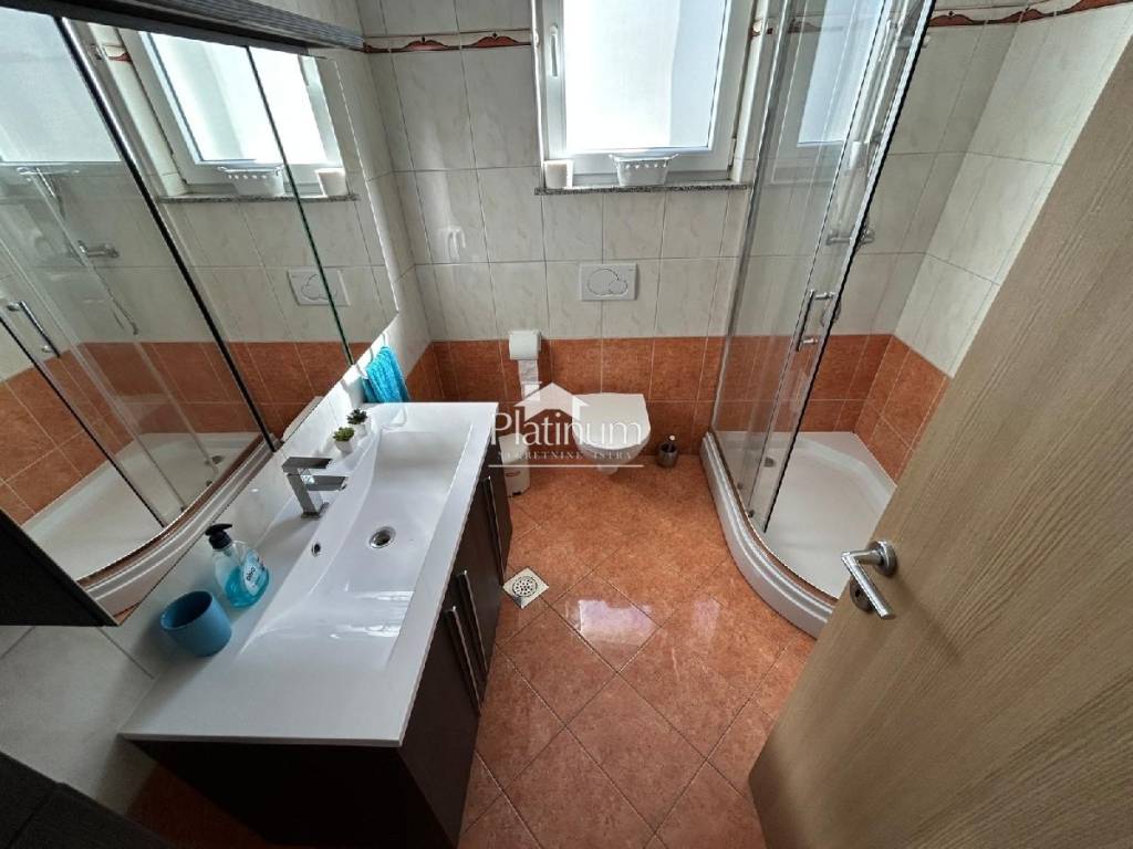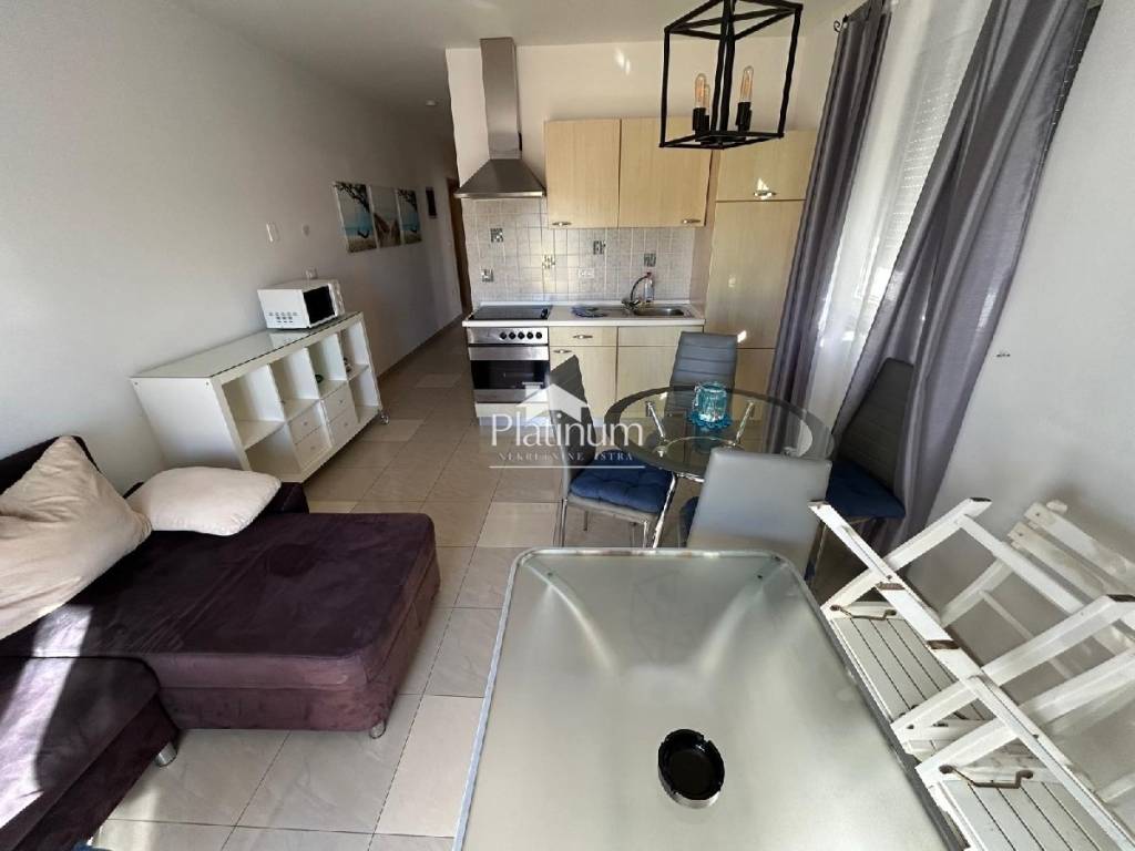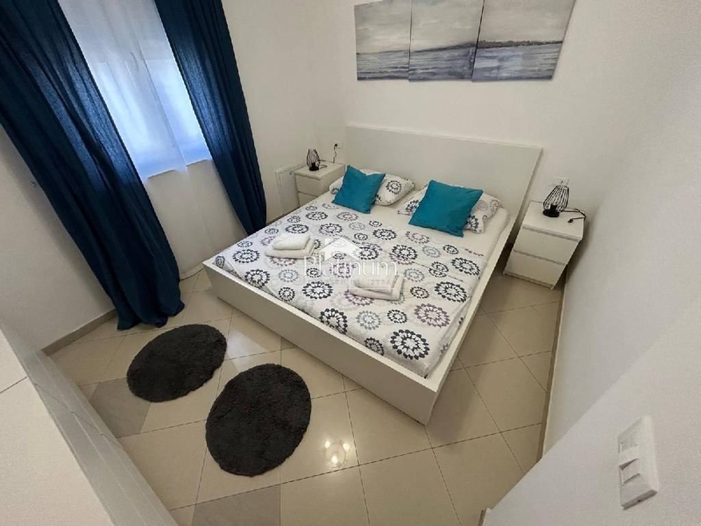 In the vicinity of Peroj, in a quiet place, there is this fantastic house consisting of a ground floor and an upper floor. On the ground floor is a comfortable apartment consisting of an entrance hall, bathroom, storage room, kitchen connected to the living room with access to the terrace from which you can go down to the pool, three bedrooms and a bathroom. On the first floor there are two apartments, one with one bedroom, bathroom, kitchen with living room and access to a covered terrace with a partial view of the sea. The second apartment consists of two bedrooms, a hallway, a bathroom and a kitchen with a living room that also leads to the terrace. In the yard there is a swimming pool with a sunbathing area, a covered area with a fireplace, a summer kitchen and a toilet. On the front side of the yard, there is one parking space and an entrance through the garage through which you can extend and park next to the house. The house has PVC joinery with mosquito nets, ceramic floors. Heatin