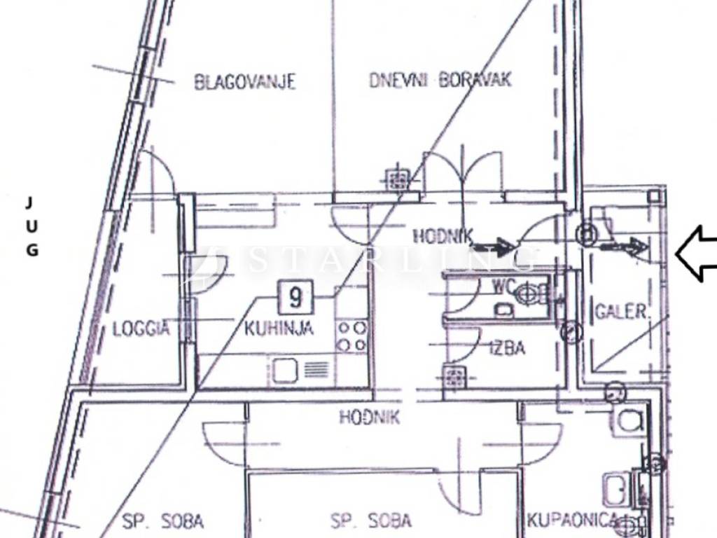 Prostor se sastoji od 3 prostorije, kupaonice, wc-a, spremišta i lođe.