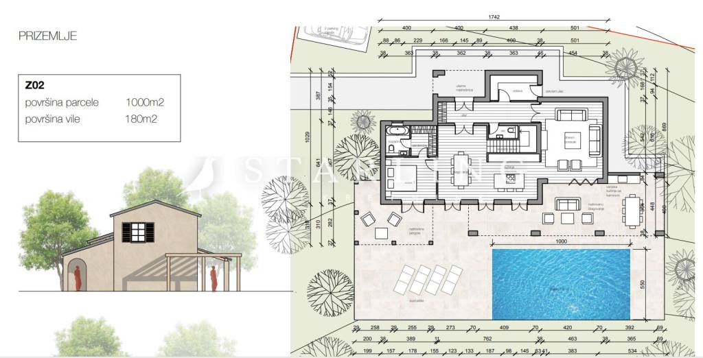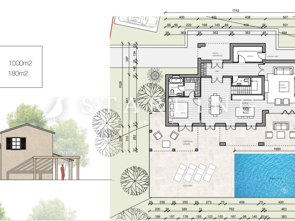 A beautiful villa with a living area of 180 m2 is for sale on a plot of land measuring 1000 m2.