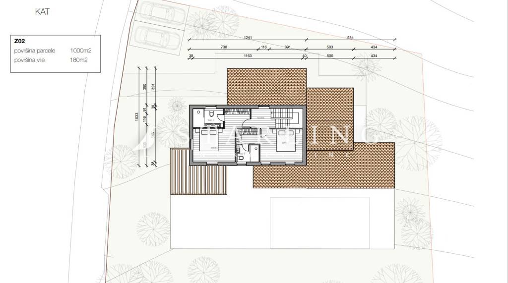 The first floor consists of two bedrooms, each with a bathroom. The floors are parquet, except in the bathrooms, where the floors are ceramic. Space heating and hot water preparation are provided by a central system using a heat pump. Underfloor heating is planned for all bathrooms.