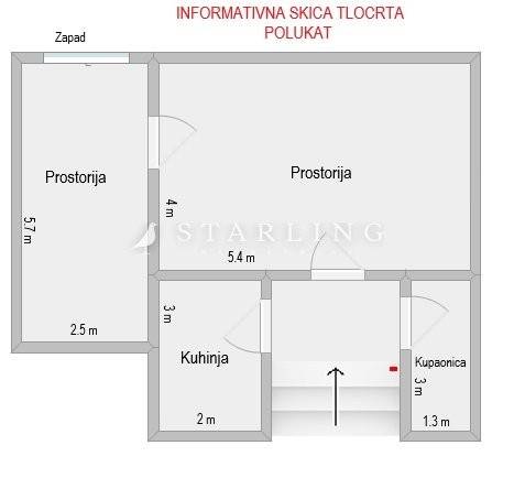 Poslovni prostor sastoji se od dvije prostorije i hodnika u prizemlju te dvije prostorije, kuhinje i kupaonice na polukatu.