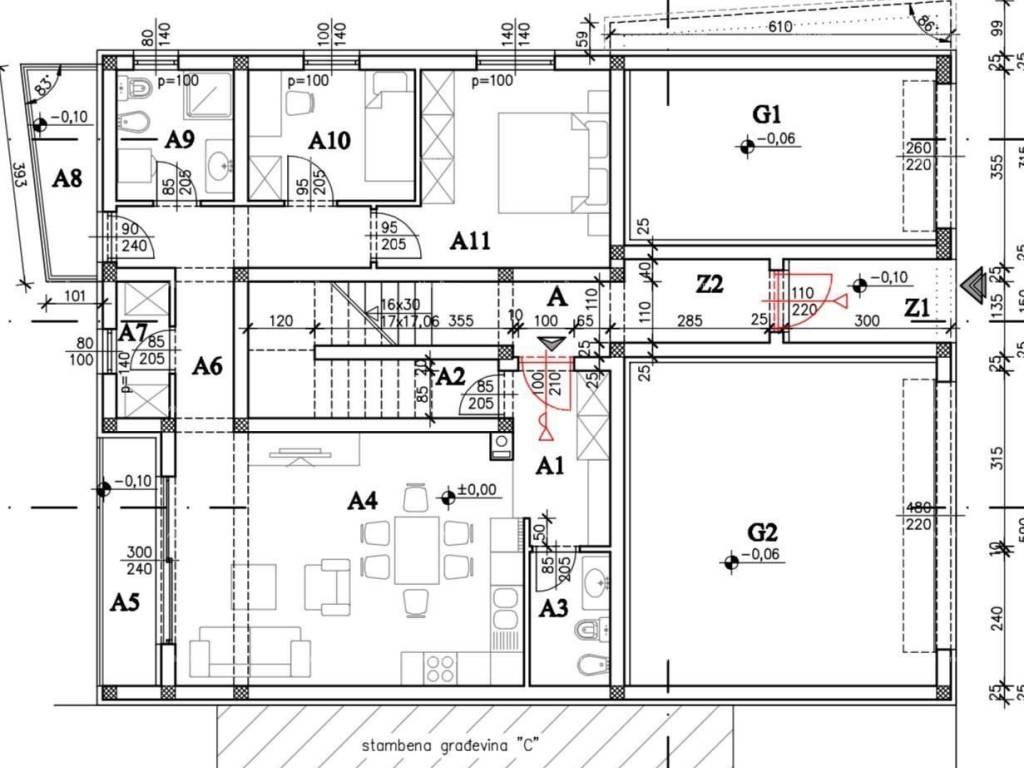 The offer includes an apartment of 81.08m2. It consists of two bedrooms, two bathrooms, a living room with a kitchen and dining room, a storage room and a laundry room, a loggia and a balcony. The apartment has a garden of approximately 50m2, a storage room under the stairs and 2 parking spaces. The planned completion of construction is autumn 2025. The building has a total of 3 floors, ground floor 1, and 2 floors with a total of 4 apartments, of which this apartment marked A occupies the entire ground floor. The apartment will have electric underfloor heating in the living room and bathrooms.Info:Azra Valjevac+385 91 611 5706azra@almadominvest.com