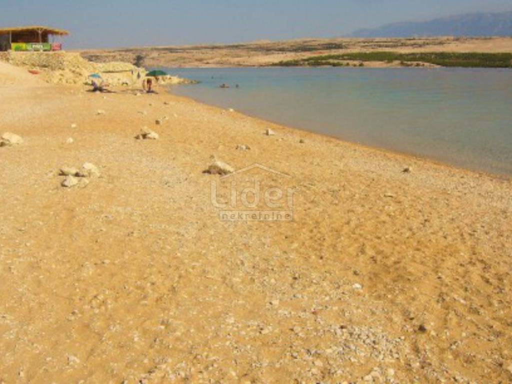 Parcela se proteže od magistrale Novalja – Pag do plaže i mora. Izvor slatke vode na posjedu.