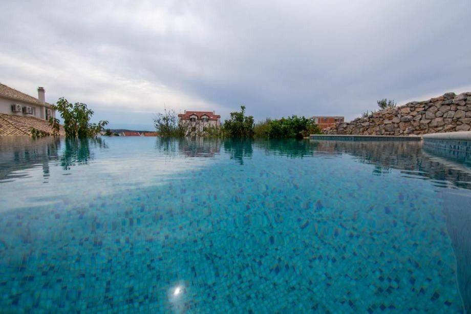 Next to the house there is a concrete pool with a surface area of approx. 50 m2. It is walled with slab stone, covered with mosaic tiles with a pebble beach at the entrance to the pool. Next to the swimming pool, under the sunbathing area, there is an equipped automatic engine room. The pool is practically filled through a borehole in the ground where fresh and sea water are mixed.