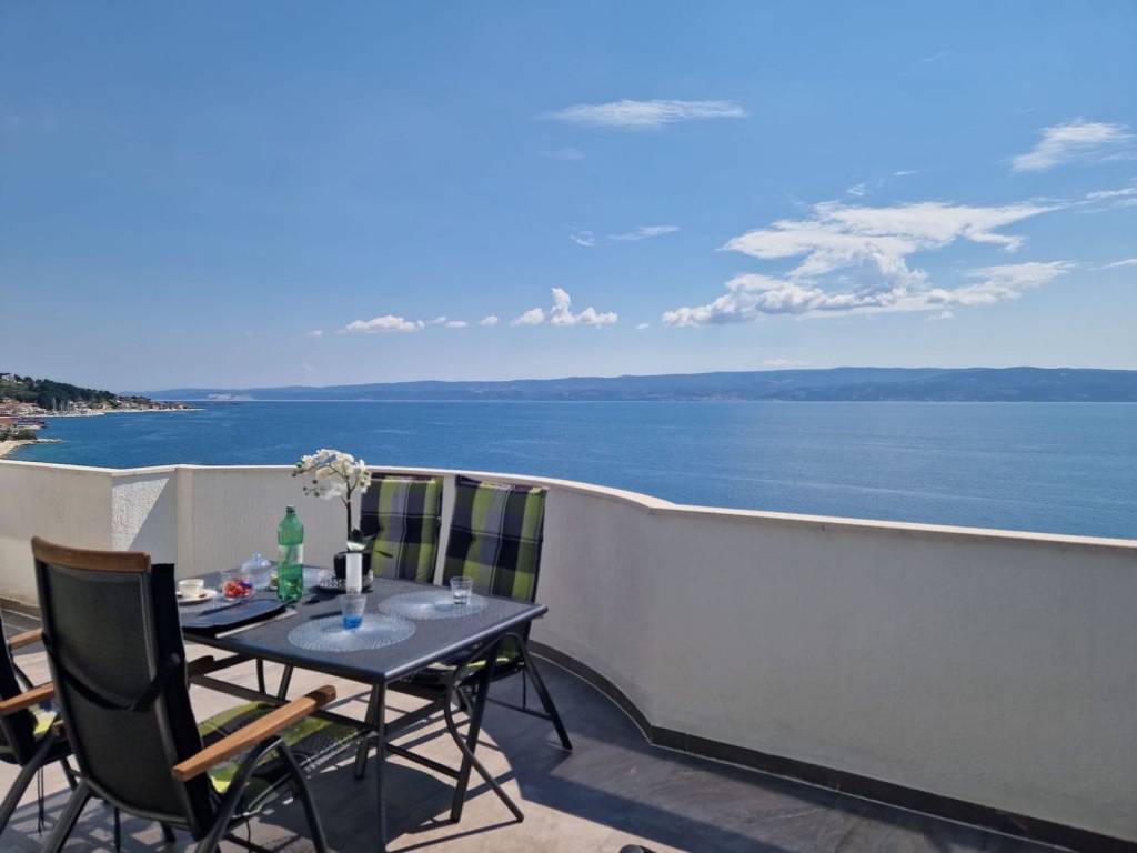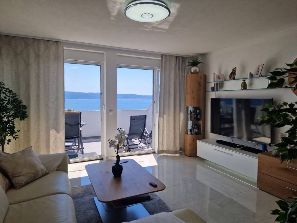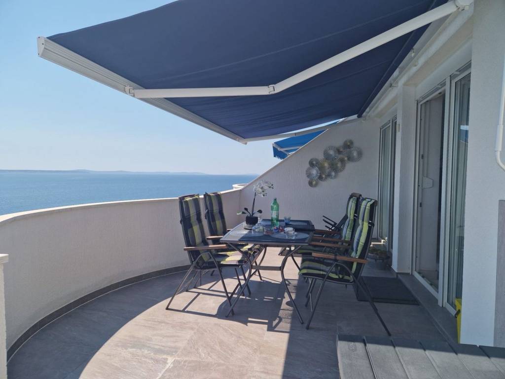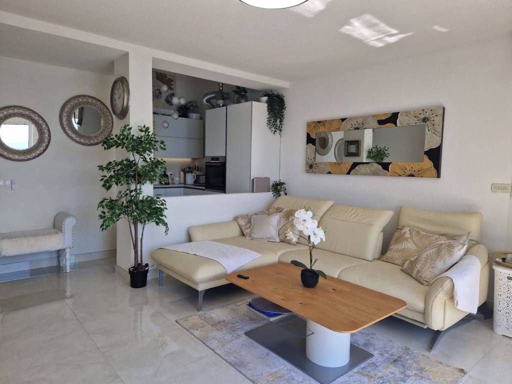 The penthouse consists of two bedrooms, a kitchen with a large airy living room, one bathroom, a separate toilet, and a terrace area of 20m² with an open sea view and nearby islands, as well as a storage room with a total area of 4.5 m².It is furnished with modern luxury furniture, however, some of the furniture is not included in the price of the apartment.