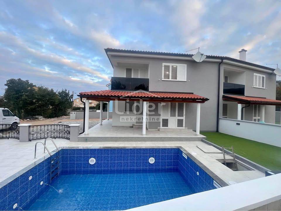 Jadranovo, we are selling a semi-detached house consisting of a ground floor and first floor with a total area of ​​103m2, a garden of 400m2, a swimming pool of 6x4m and enough parking spaces. Heating/cooling with a heat pump as well as a swimming pool. New construction. Construction completion in 2024. All documentation in order. All permits obtained.