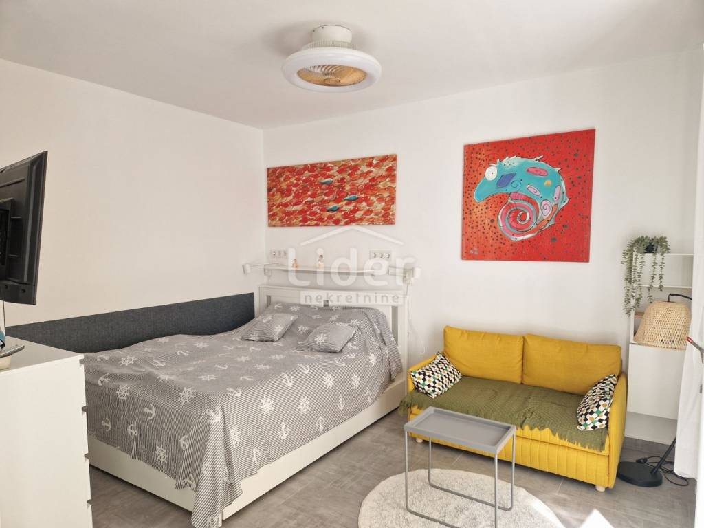 A smaller apartment is for sale in the center of the Town of Rab. It has been completely renovated and used to the maximum. Beautifully decorated and functionally meets all the needs of two people. It has underfloor heating and air conditioning. It also has a woodshed of approximately 5 m2. Furniture is included in the price. The location is excellent for all those who want to be in the center of events, and all the amenities of city life are immediately available. The city beach is approximately 100 m away.