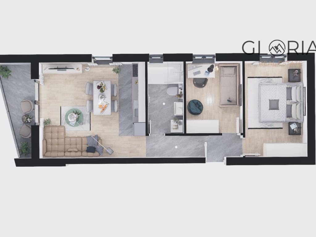 loggia (pločice) – 4,90 m2 (x 0,75 = 3,70 m2)