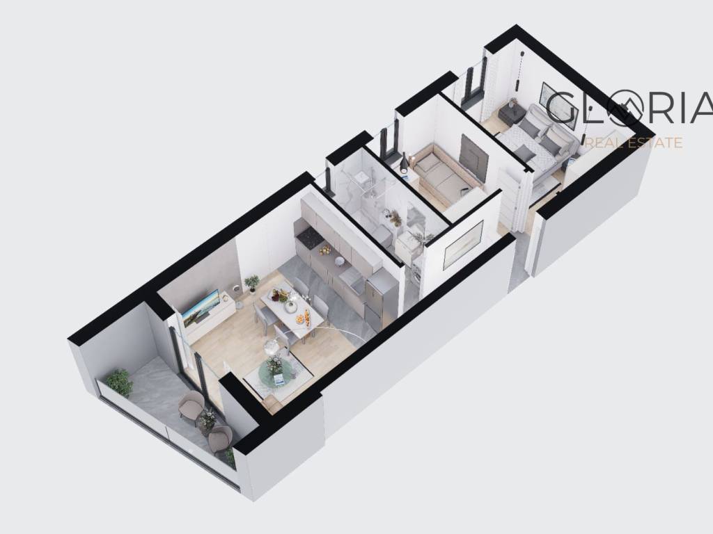 Zgrada se sastoji od suterena na kojem je smještena garaža za tri vozila, te prizemlja i dva kata na kojima se nalazi ukupno osam stanova. U ponudi su jednosobni i dvosobni stanovi te jedan prostrani trosobni stan. Svi stanovi projektirani su moderno, s naglaskom na maksimalnu iskoristivost prostora i funkcionalan raspored.