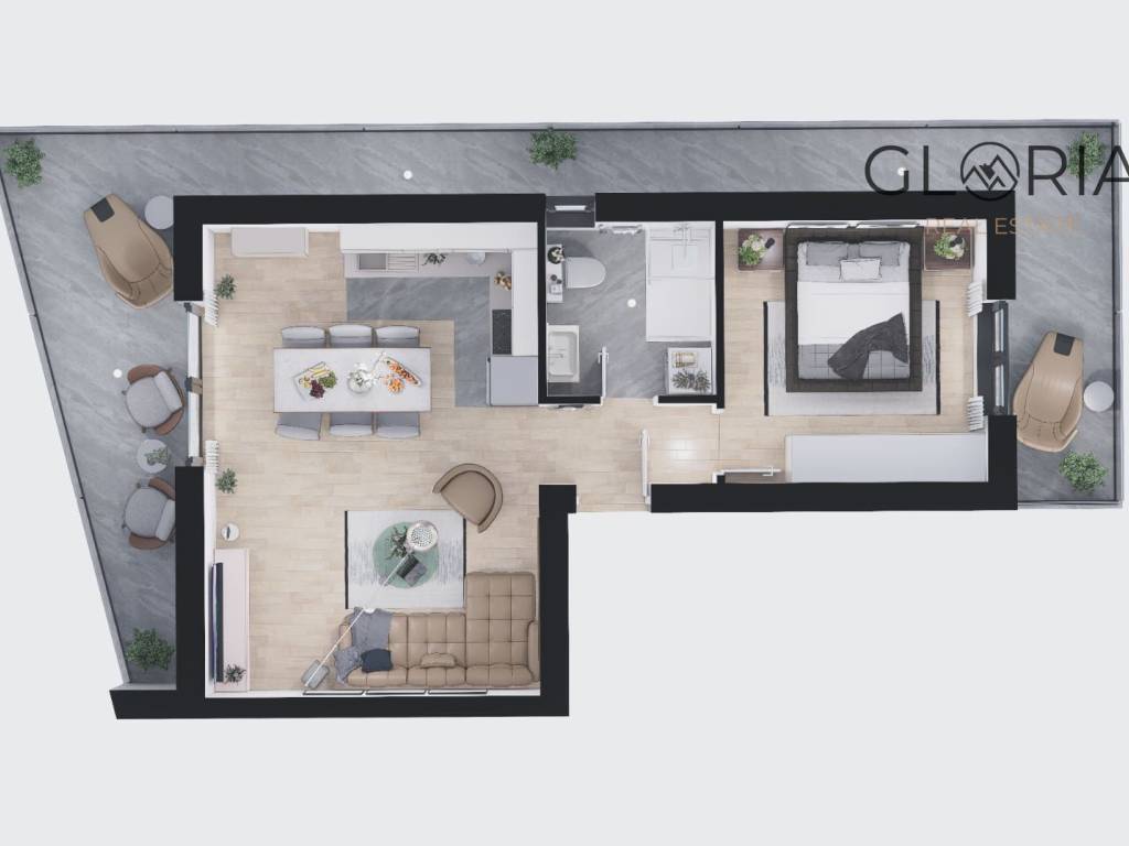 Zgrada se sastoji od suterena na kojem je smještena garaža za tri vozila, te prizemlja i dva kata na kojima se nalazi ukupno osam stanova. U ponudi su jednosobni i dvosobni stanovi te jedan prostrani trosobni stan. Svi stanovi projektirani su moderno, s naglaskom na maksimalnu iskoristivost prostora i funkcionalan raspored.
