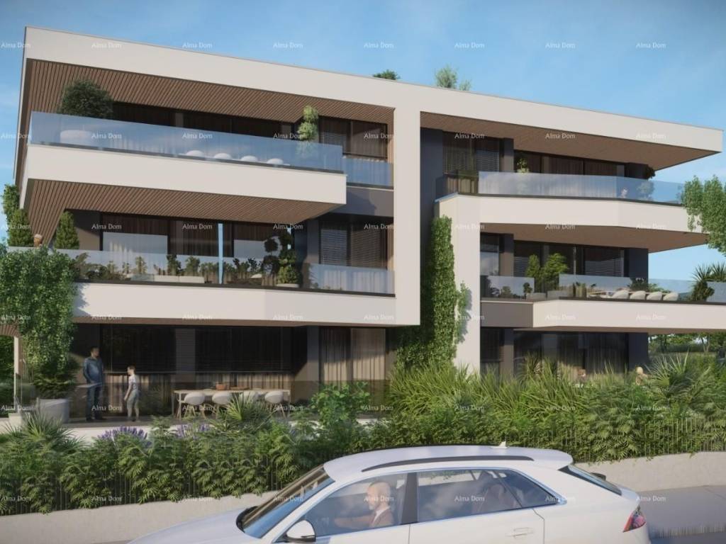 Rovinj! Close to the city center! S4We offer an apartment on the 1st floor of a future luxury new building.The apartment has a hallway, a bathroom, three bedrooms, two bathrooms, a separate toilet, a storage room, a kitchen with a dining room, and a living room.Luxury new building. Each apartment will have underfloor heating with a heat pump. Air-conditioned. Video surveillance. Video intercom.Anti-theft entrance door. Parquet in the rooms, first-class ceramics.Elevator in the building. Two parking spaces in the garage.Construction started. Estimated completion in 2025.INFO: azra@almadominvest.com+385 91 6115706jelena@alma-nekretnine.com+385 98 323 264