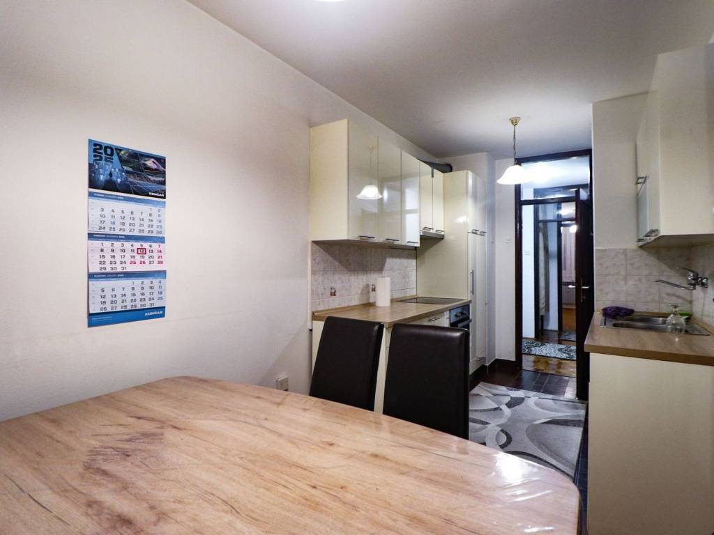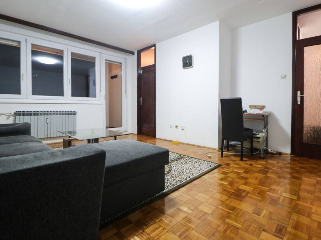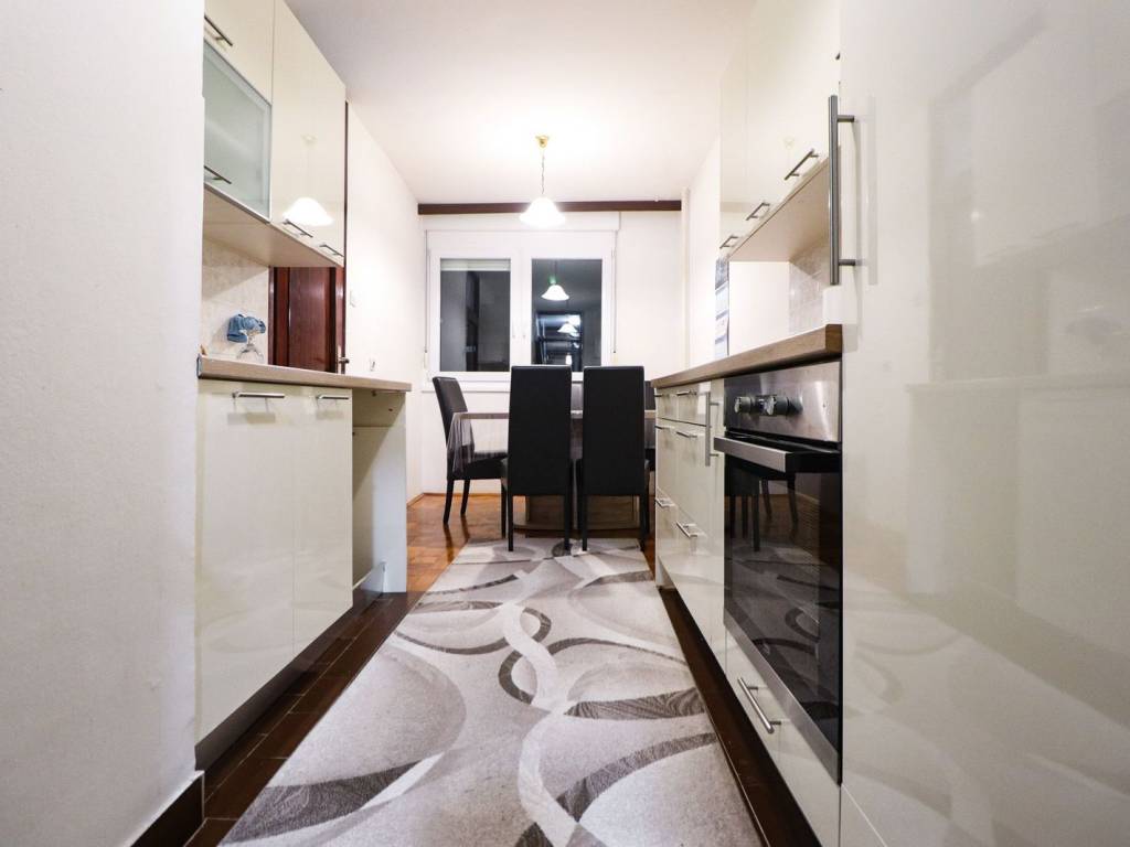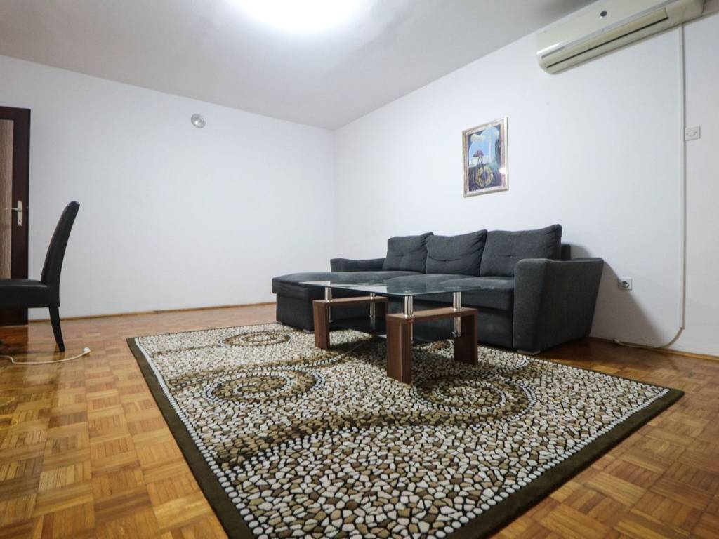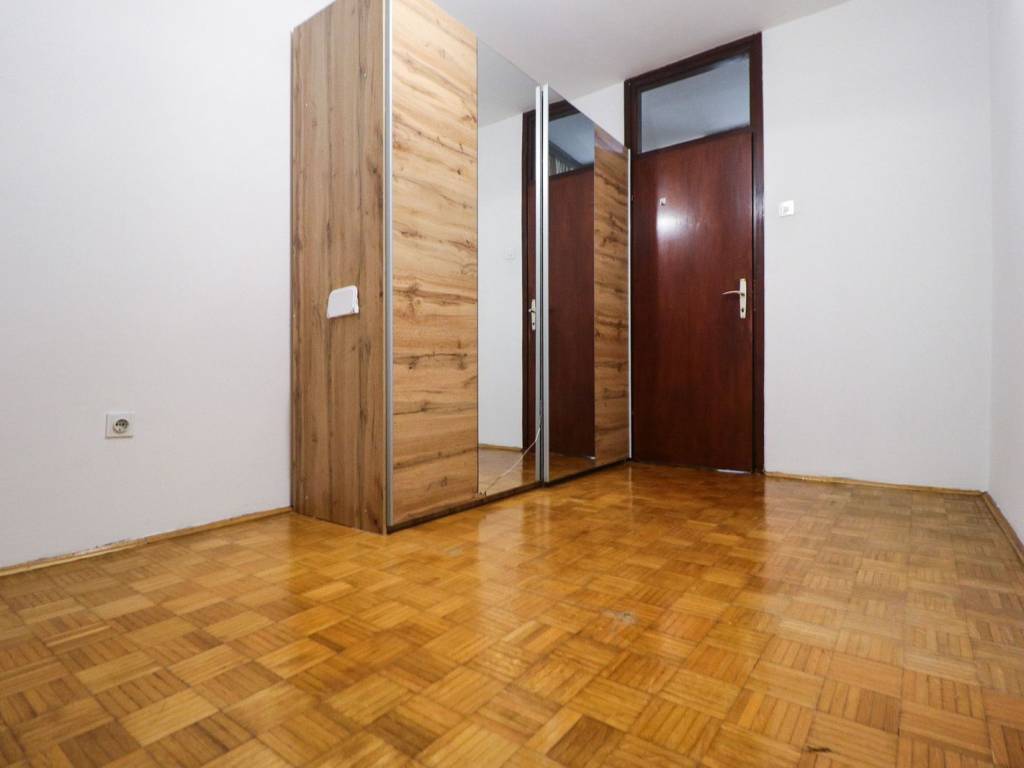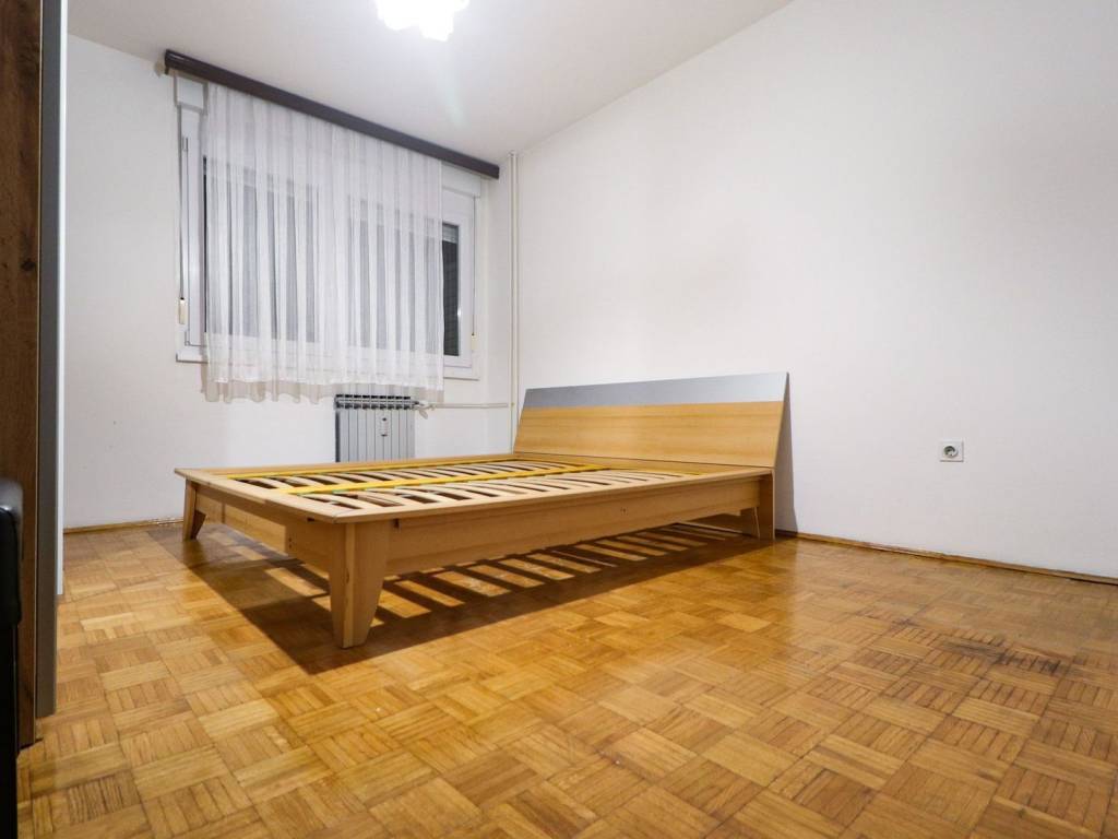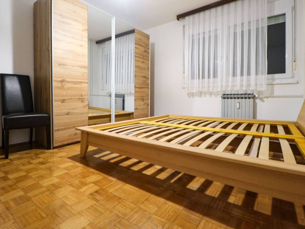 Djelomično je namješten - ima kuhinju, kauč na razvlačenje, ormare, bračni krevet 180x200 u jednoj spavaćoj sobi, klima uređaj, stolić, blagovaonski stol, stolice, kadu, toalet, PVC stolariju, protuprovalna vrata, portafon i sl. Stan ima mnogo spremišnog prostora - ormari, ormarići, hodnik sa nišom za stvari, ostava i vlastito spremište u podrumu.