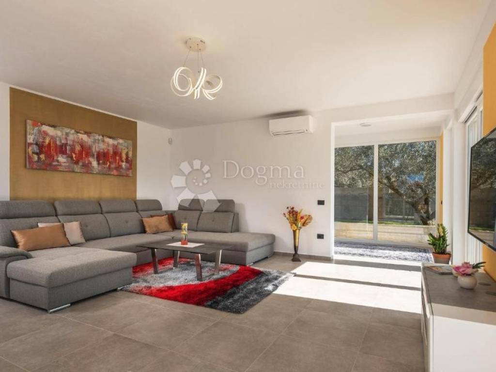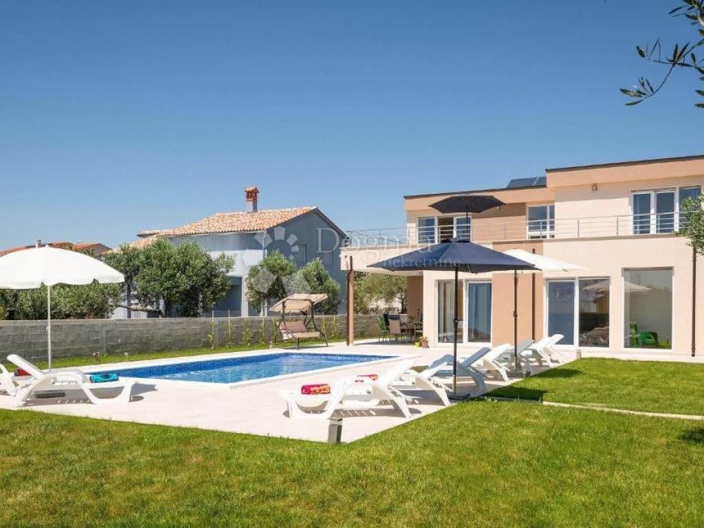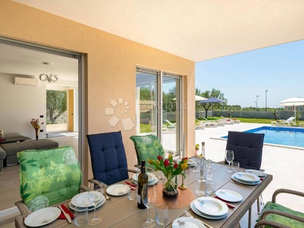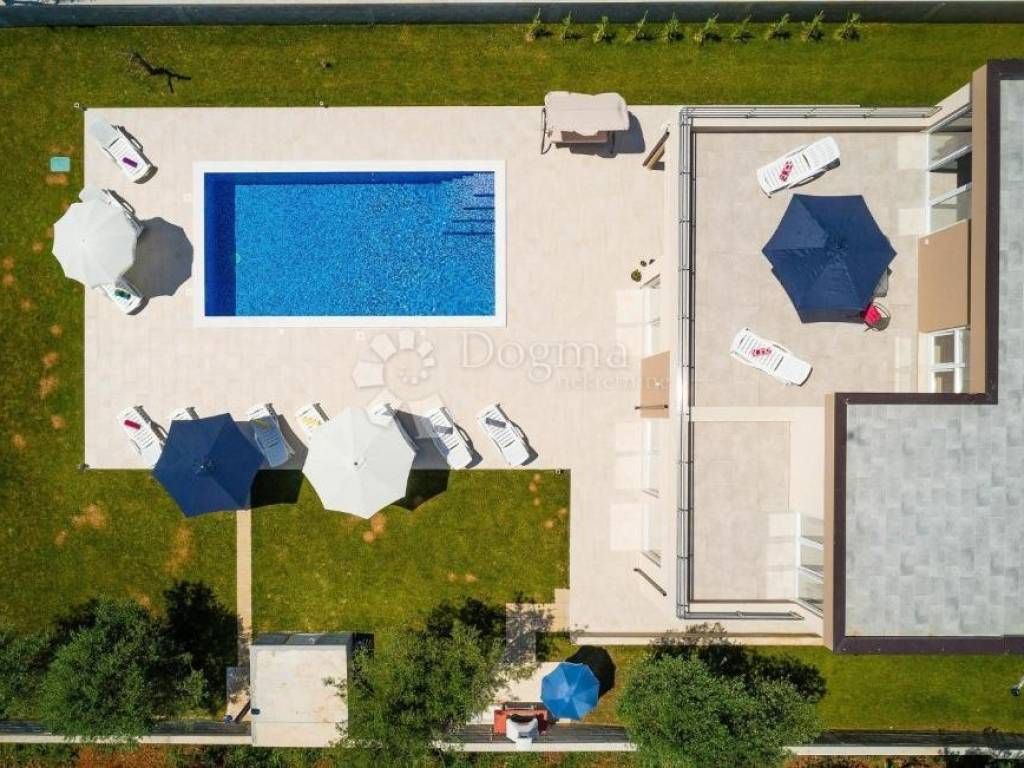 In a quiet and prestigious part of Vodnjan is this exceptional modern villa, situated on an impressive plot of 1171 m. Thanks to its elevated position, the villa offers enchanting panoramic views - from the green Istrian landscapes, through olive groves, to Pula, Brijuni and the open sea of the Fažana coast. A rarity on the market that combines peace, privacy and luxury with the immediate proximity of all amenities.