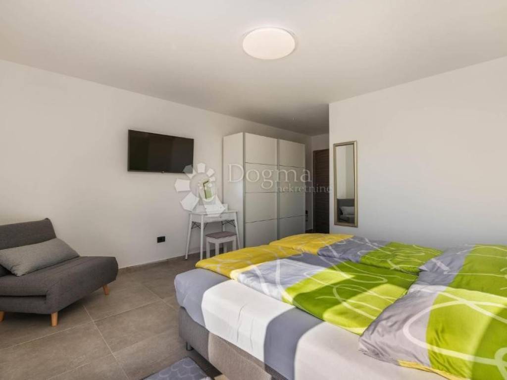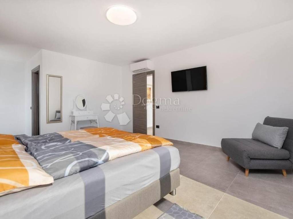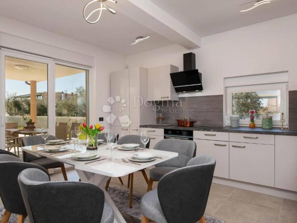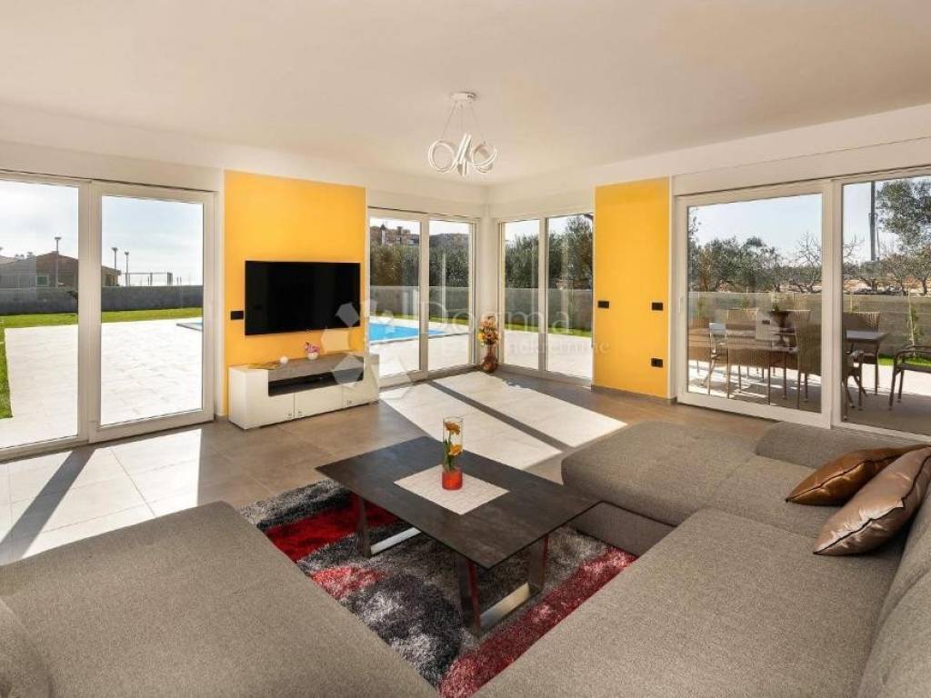 In a quiet and prestigious part of Vodnjan is this exceptional modern villa, situated on an impressive plot of 1171 m. Thanks to its elevated position, the villa offers enchanting panoramic views - from the green Istrian landscapes, through olive groves, to Pula, Brijuni and the open sea of the Fažana coast. A rarity on the market that combines peace, privacy and luxury with the immediate proximity of all amenities.