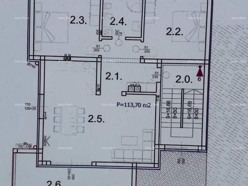 New in offer!We are selling apartments in a new building, Barbariga.The smaller residential complex consists of two two-story buildings. Each building has only three apartments.The spacious apartment, measuring 113.70 m², is located on the 1st floor of a new building and consists of a hallway, two bedrooms, living room, kitchen, bathroom and terrace.The apartment has a parking space, storage room and part of the garden, which are included in the price.This property represents an excellent investment in a peaceful environment, providing the perfect balance between comfort and proximity to the beach and the center of Barbariga. Don"t miss this opportunity!For more information, please contact:Azra+385 91 611 5706+385 98 420 885azra@almadominvest.com