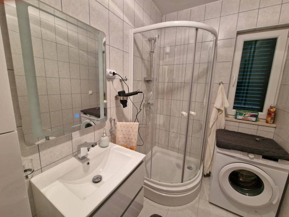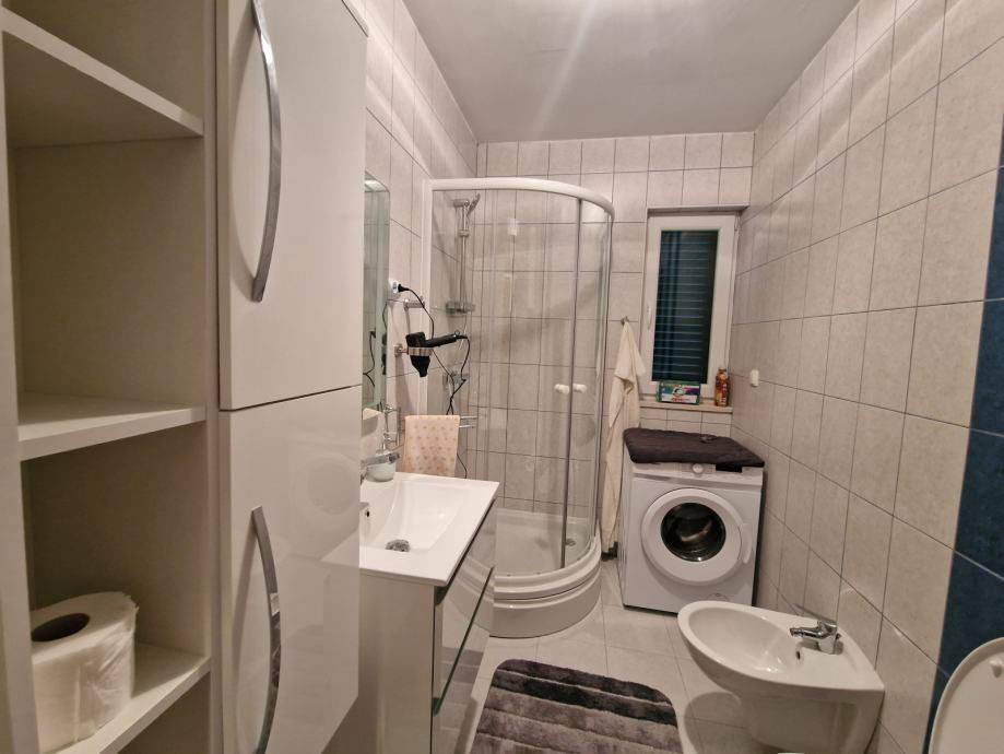 A two-bedroom apartment is for sale, located on the ground floor of a small residential building on the southern side of the island of Čiovo. The building consists of a total of eight residential units spread over four floors: ground floor, first, second, and third floor.The apartment consists of living room, kitchen, dining area, hallway, two bedrooms, and a bathroom, with a total interior floor area of 53.10 m². It also includes two covered terraces, one measuring 9.86 m² and the other 8.72 m². Additionally, the apartment comes with a private garden of 26.87 m² and one outdoor parking space.The property is in excellent condition and is being sold fully furnished and equipped, ready for immediate occupancy. It represents an excellent opportunity both for comfortable family living and as an investment for tourist rental.The apartment is situated in an excellent and peaceful location, approximately 300 m from the sea, and in close proximity to all amenities necessary for everyday living. The distance to Trogir is 5 km, to Split Airport 9 km, and to the center of the city of Split 32 km.