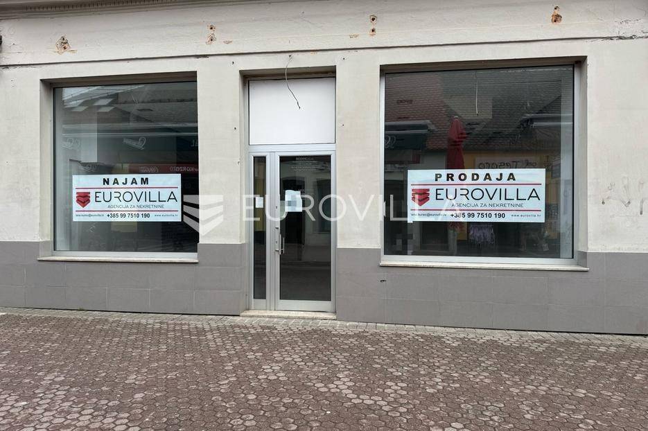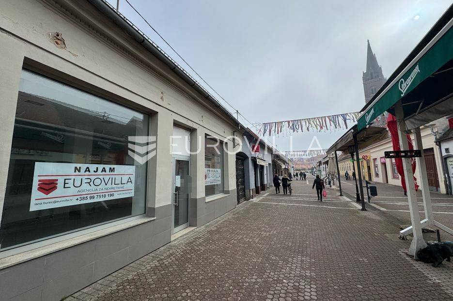 Đakovo, Centar, poslovni prostor površine 50 m2, na frekventnoj lokaciji u blizini Đakovačke katedrale. Zbog velikog broja pješaka i prometne pozicije, prostor je idealan za razne djelatnosti. Prostor je prostran, pravilnog kockastog oblika, s visokim stropovima od 3 metra, što omogućuje prilagodbu raznim poslovnim potrebama. Opremljen je priključcima za struju, dovod i odvod vode te kanalizaciju. Zbog svoje višenamjenske namjene, prostor je pogodan za pekaru, trgovinu, ured, salon ili slične poslovne djelatnosti. Ostale informacije na upit.