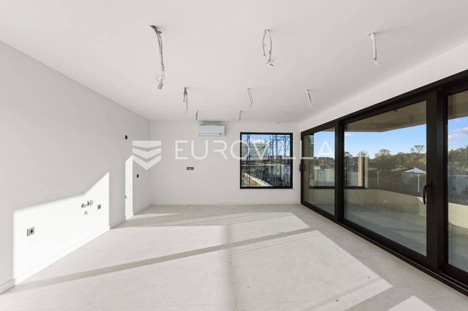 Stan ukupne površine 154m2, a se sastoji od ulaznog hodnika, open space dnevnog boravka, kuhinje s blagovaonom, četiri prostrane spavaće sobe, dvije kupaone, gostinjskog toaleta, prostorije za tehniku i praone. Iz dnevnog boravka izlazi se na natkrivenu terasu s koje se pruža predivan panoramski pogled. Stanu također pripadaju i četiri parkirna mjesta.Podno grijanje na dizalicu topline je provedeno u cijelom stanu, a hlađenje putem klima uređaja. Aluminijska stolarija, troslojno staklo, električni podizači roleta i komarnici.
