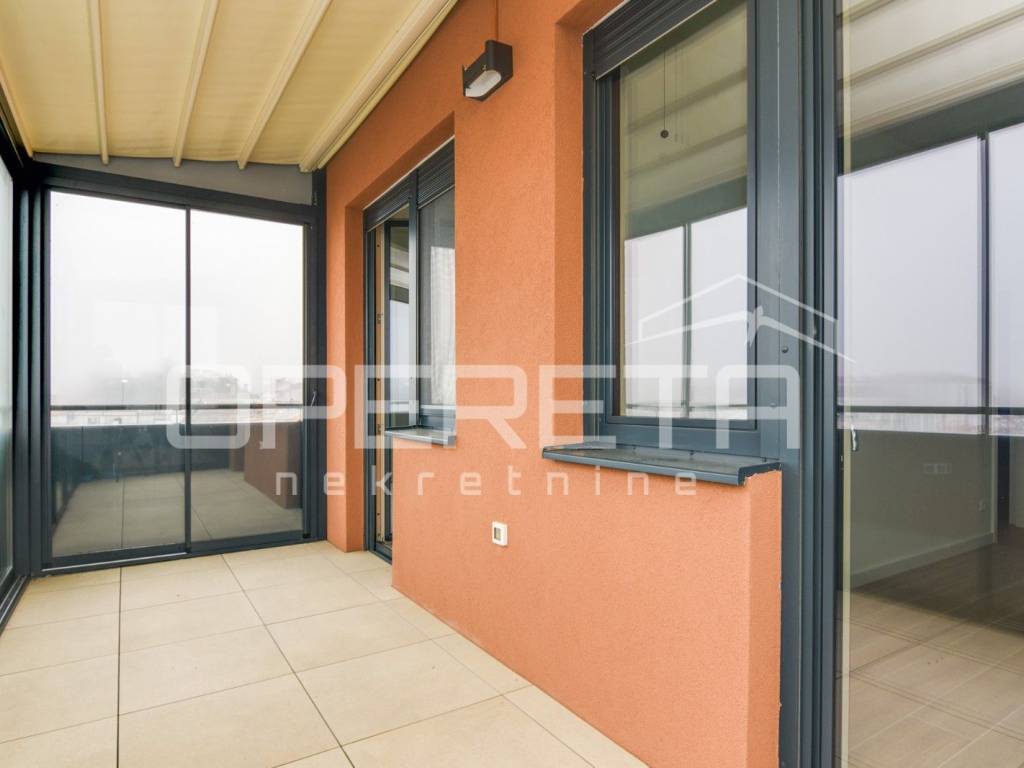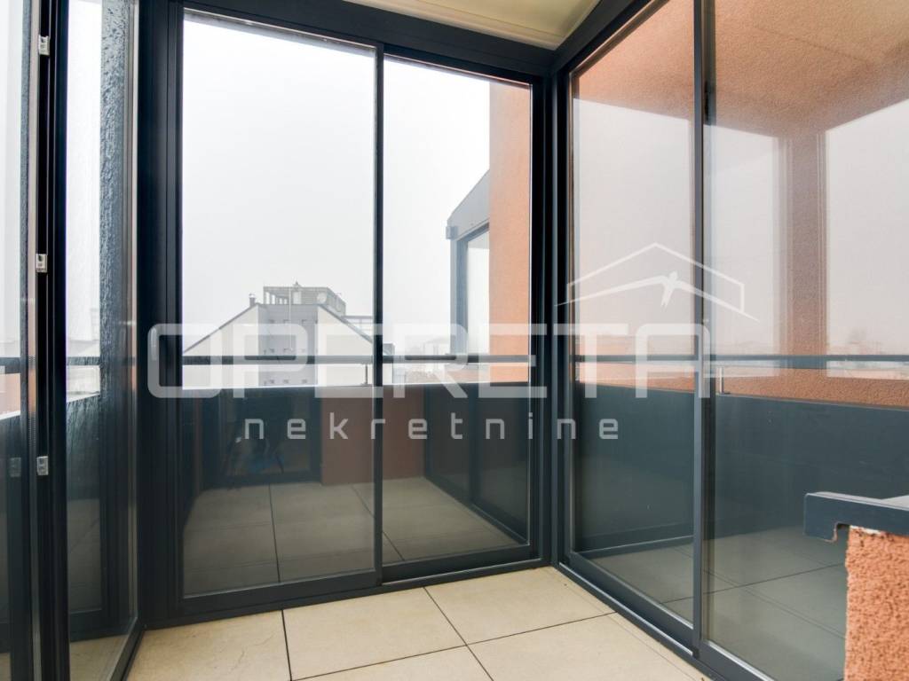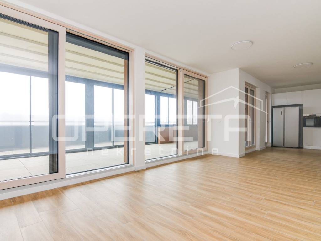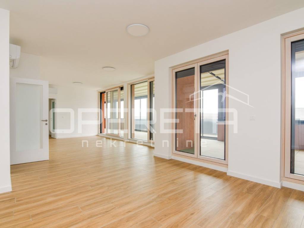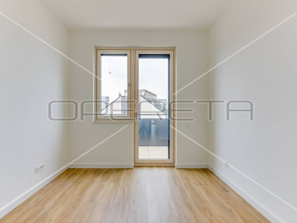 ZAKUP, URED, TREŠNJEVKA, NOVOGRADNJA Peterosoban uredski prostor na 5. katu s liftom koji se sastoji od tri hodnika, 1 open space prostor s kompletnom kuhinjom + 4 uredske prostorije, wc-a, dvije kupaonice ukupne podne površine 131,29 m² + natkrivena terasa površine cca 20m2 + spremište u razizemlju+ zatvorena garaža na -1, parkirno mjesto u garaži i vanjsko parkirno mjesto ( sveukupno pripadaju 3 parkinga). Pogodan za tihe djelatnosti, IT, arhitektonski ured,... Dostupan odmah.