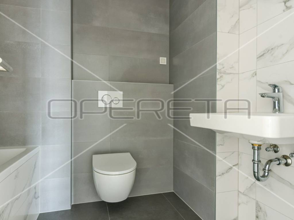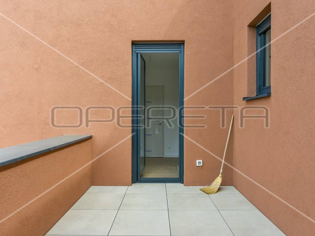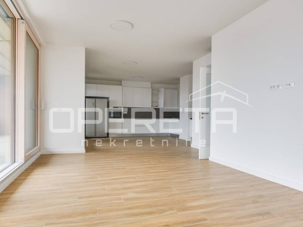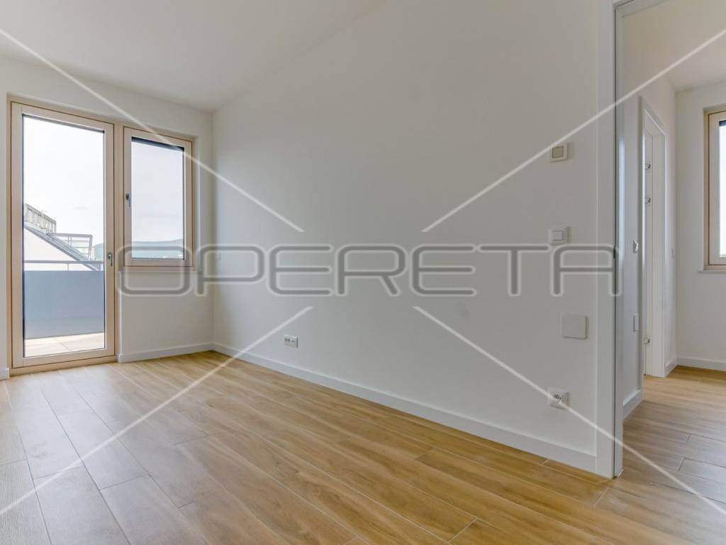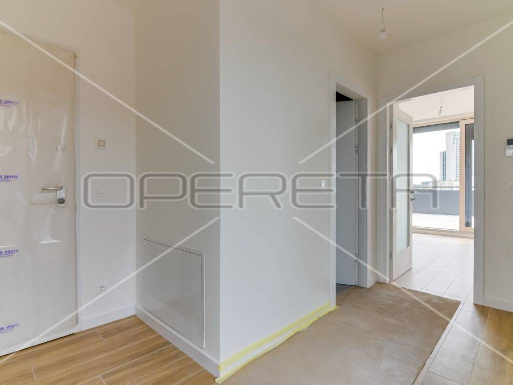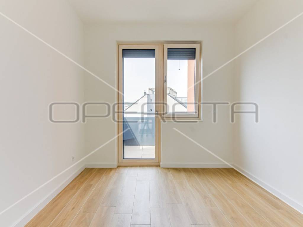 ZAKUP, URED, TREŠNJEVKA, NOVOGRADNJA Peterosoban uredski prostor na 5. katu s liftom koji se sastoji od tri hodnika, 1 open space prostor s kompletnom kuhinjom + 4 uredske prostorije, wc-a, dvije kupaonice ukupne podne površine 131,29 m² + natkrivena terasa površine cca 20m2 + spremište u razizemlju+ zatvorena garaža na -1, parkirno mjesto u garaži i vanjsko parkirno mjesto ( sveukupno pripadaju 3 parkinga). Pogodan za tihe djelatnosti, IT, arhitektonski ured,... Dostupan odmah.