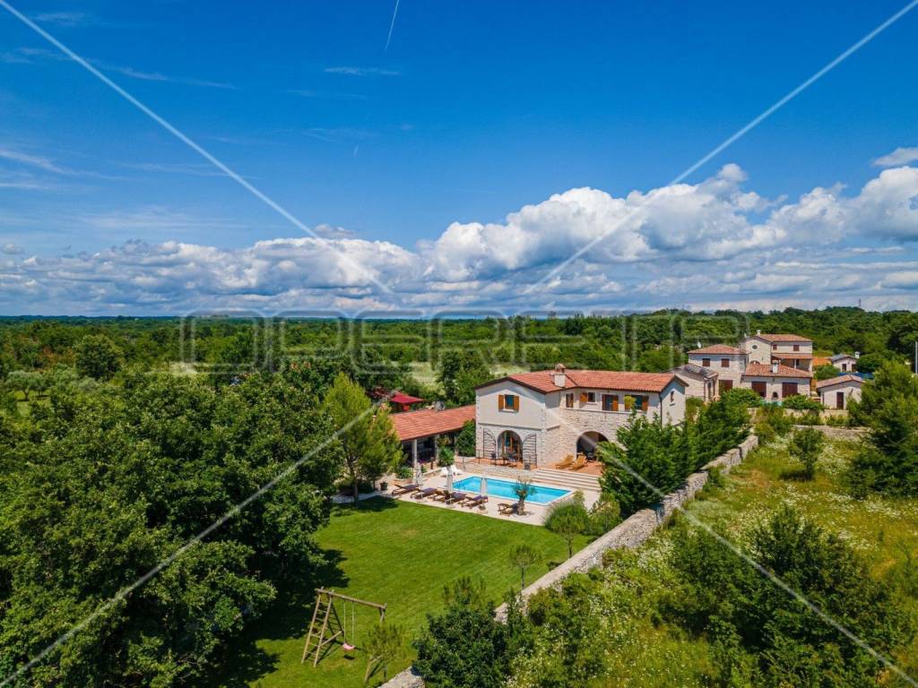 Istria, in one of the settlements of the Municipality of Svetvinčenat, in complete peace, surrounded by nature, this impressive villa built in a rustic style is located.