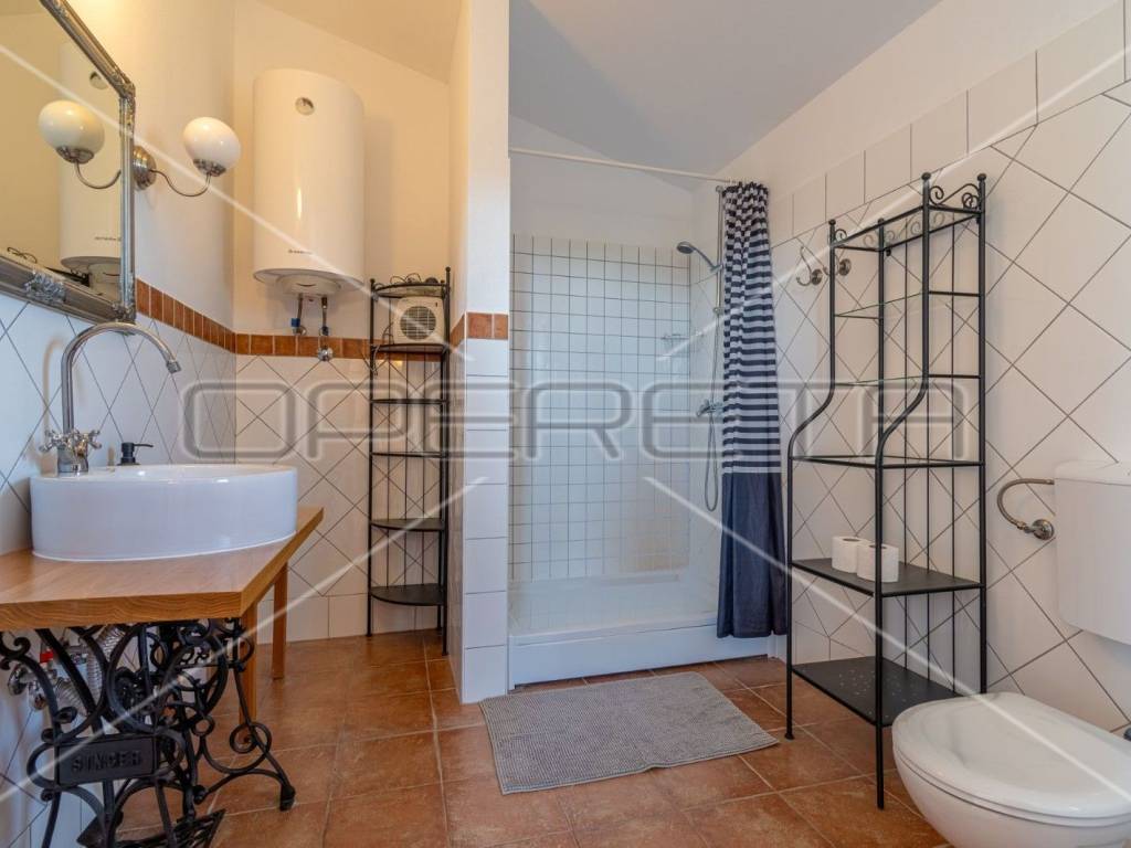 On the ground floor there is an entrance area, a living room with a beautiful authentic fireplace and an exit to the terrace, a kitchen with a dining room, a bedroom with a bathroom and an additional toilet.