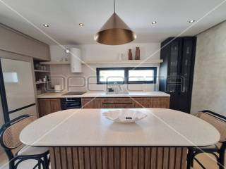 On the ground floor there is a bathroom, a storage room, and a spacious kitchen with a dining room, a living room and a bedroom with direct access to the sun deck and pool. On the first floor, which is reached by an internal staircase, there are three bedrooms, two bathrooms, a large terrace and two balconies.