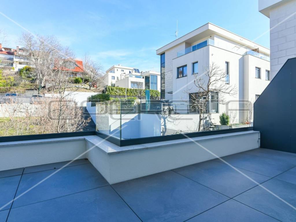 An exceptional property for rent in the luxury settlement Mlinovi Hills. The duplex house, set back from the main road with its own driveway and garage and two parking spaces, enjoys complete privacy, and from all three floors offers a view of Sljeme and the greenery.