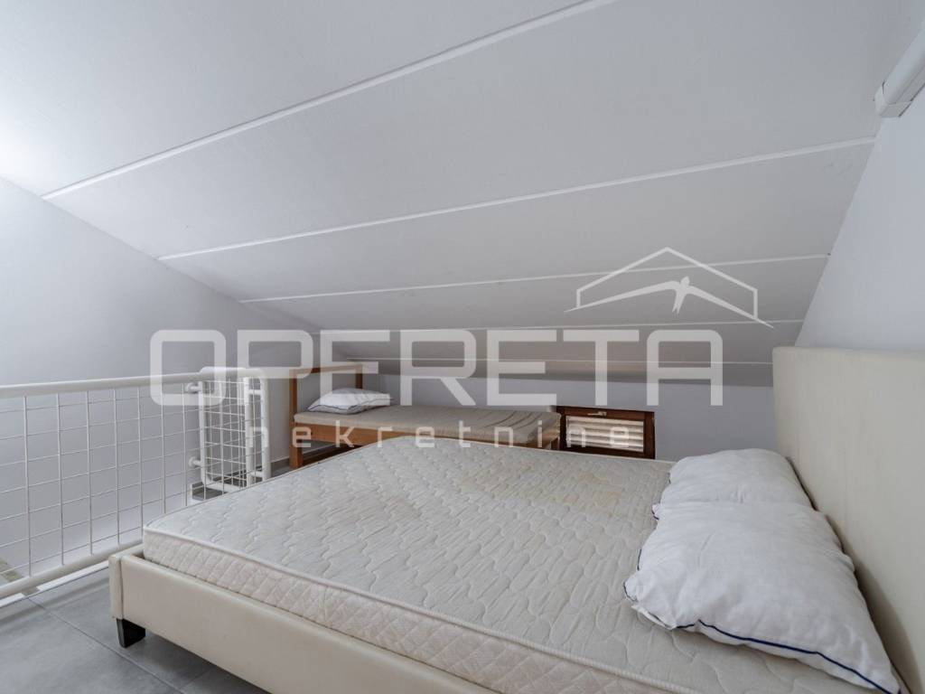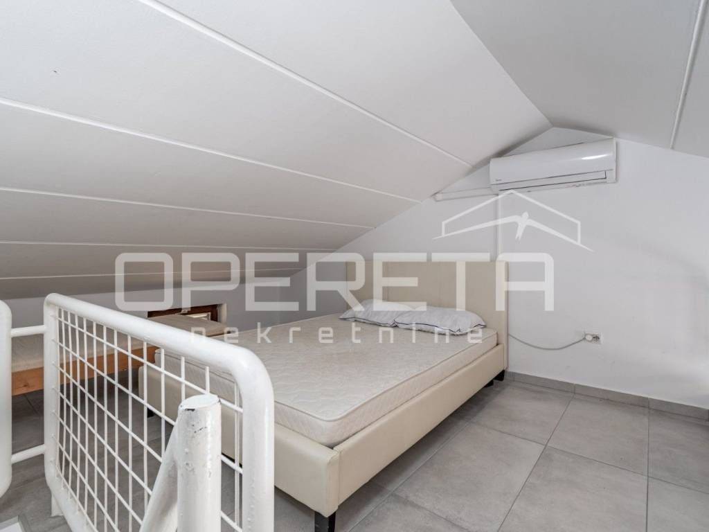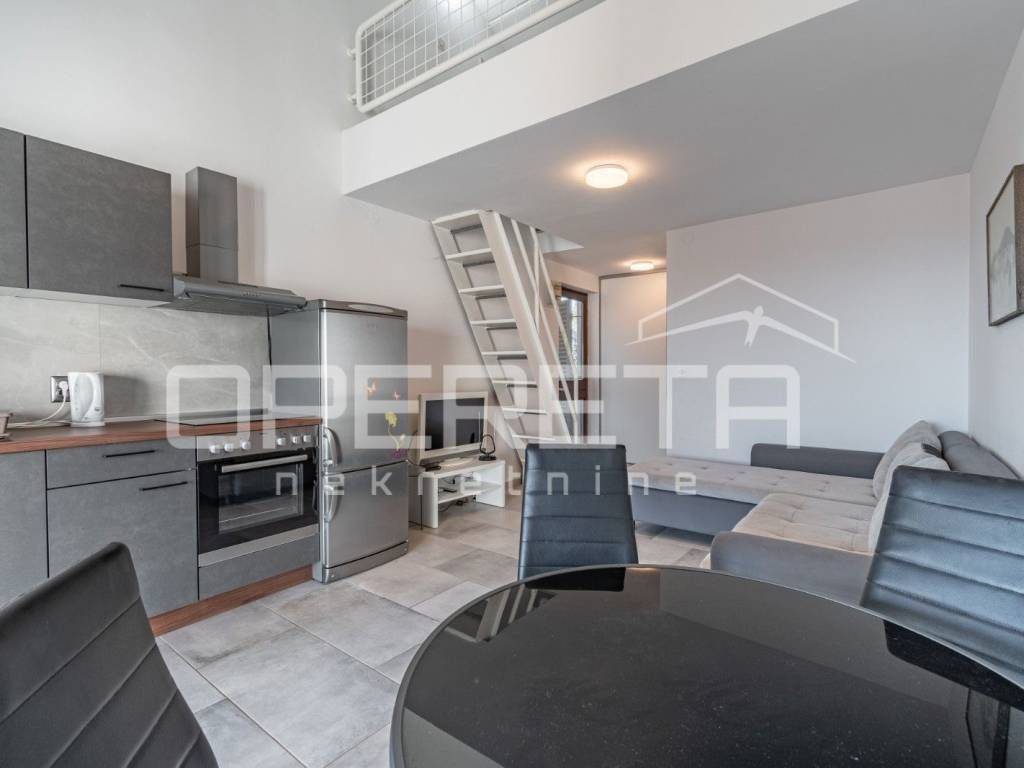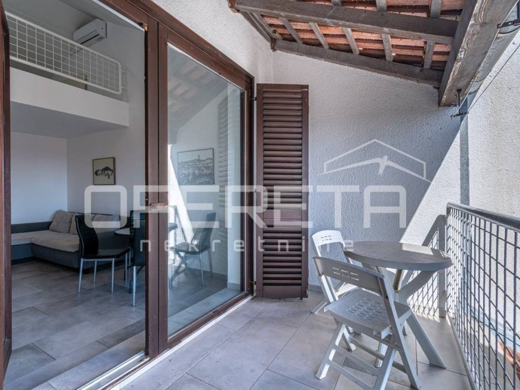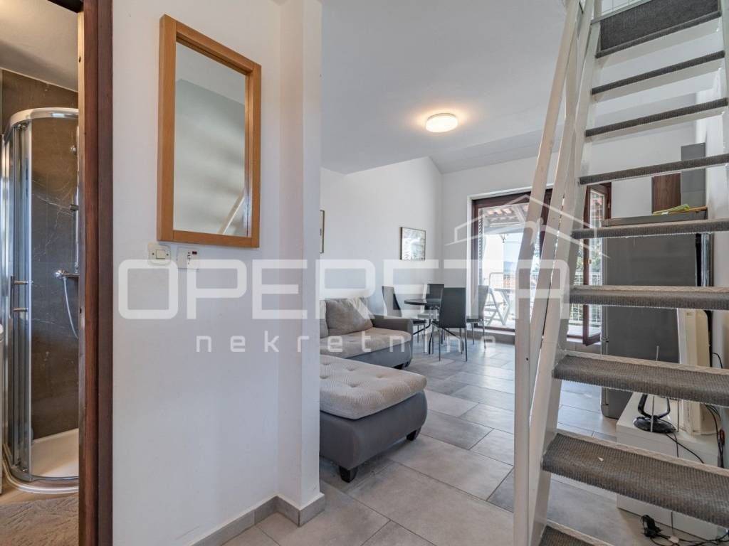APARTMAN, PRODAJA, ŠEGOTIĆI, DUGA UVALA, 35m2, 1-soban apartman u blizini plaže (350m). Apartman je smješten na 2. katu ujedno i zadnjem, a sastoji se od ulaznog hodnika, kupaonice s WC-om, dnevnog boravka s kuhinjom i blagovaonicom te izlazom na balkon i galerijom gdje je smještana spavaća soba.
