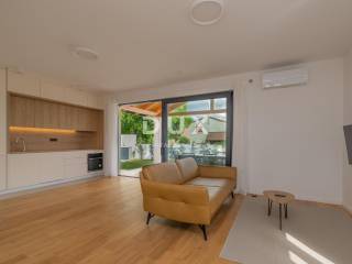 This modern, single-storey house, built in 2025, is located in the heart of Bale, in a quiet one-way street with no traffic, providing complete enjoyment of silence and privacy. It is surrounded by a garden and greenery, and high walls on the plot ensure intimacy.