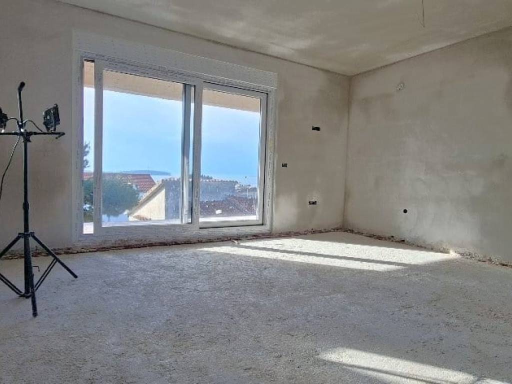 The apartment is functionally laid out over two levels: Upper floor: spacious living room with kitchen and dining area, featuring large glass openings that fully open the space to the viewthe sea and the old town dominate the living area Lower floor: two bedrooms and a bathroom, forming a calm and private sleeping zone The apartment is part of a new-build project, allowing the future owner to complete the interior according to personal taste and style.